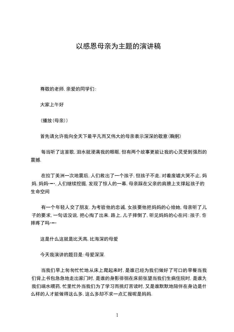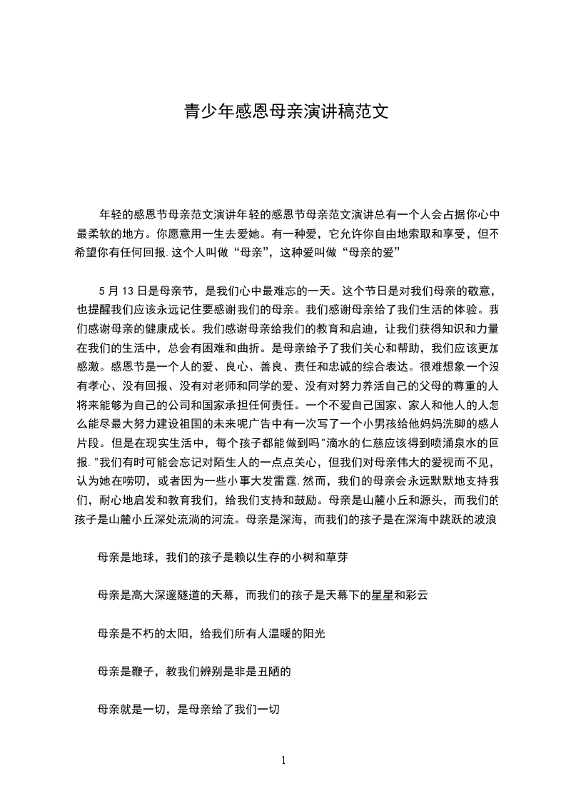你理解上面介绍的青少年感恩母亲的演讲的示范文本吗