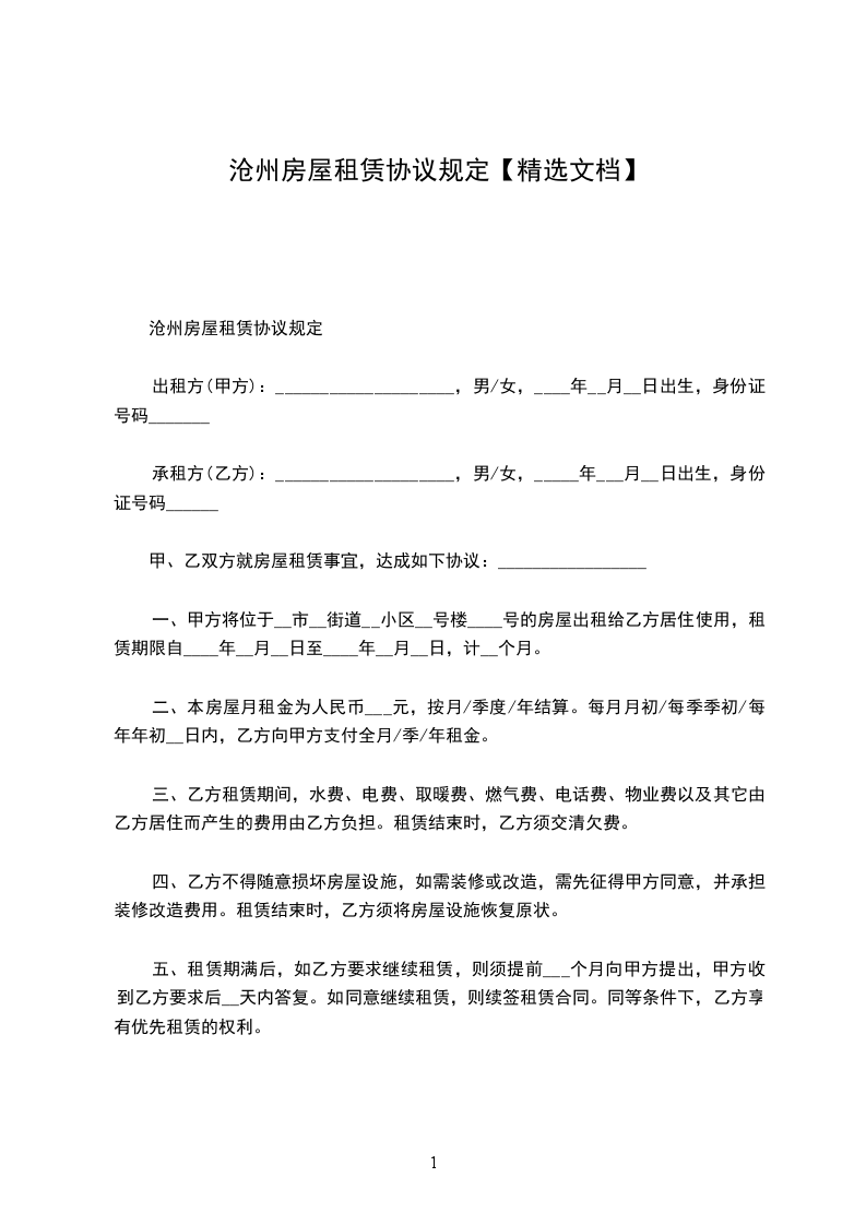 一、甲方将位于__________市__________街道__________小区_____号楼_____________号的房屋出租给乙方居住使用,租赁期限自__________年__________月__________日至__________年__________月__________日,计_____个月。