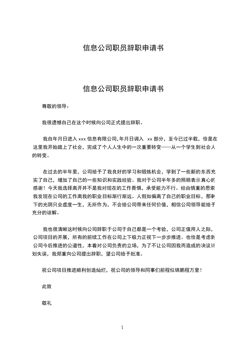 我自_____年_____月_____日进入xxx信息有限公司,_____年_____月_____日调入xx部分,至今已过半载,恰是在这里我开始踏上了社会,完成了个人人生中的一次重要转变——从一个学生到社会人的转变。