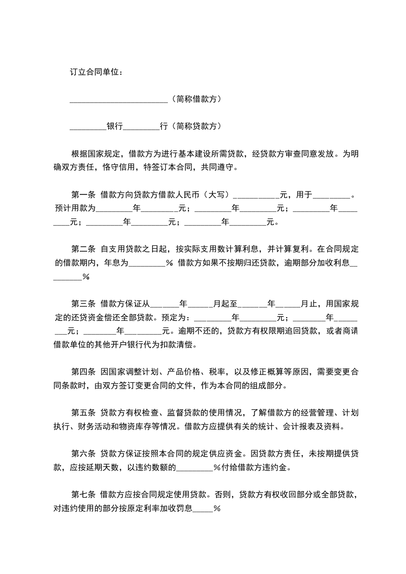 根据国家规定,借款方为进行基本建设所需贷款,经贷款方审查同意发放。为明确双方责任,恪守信用,特签订本合同,共同遵守。