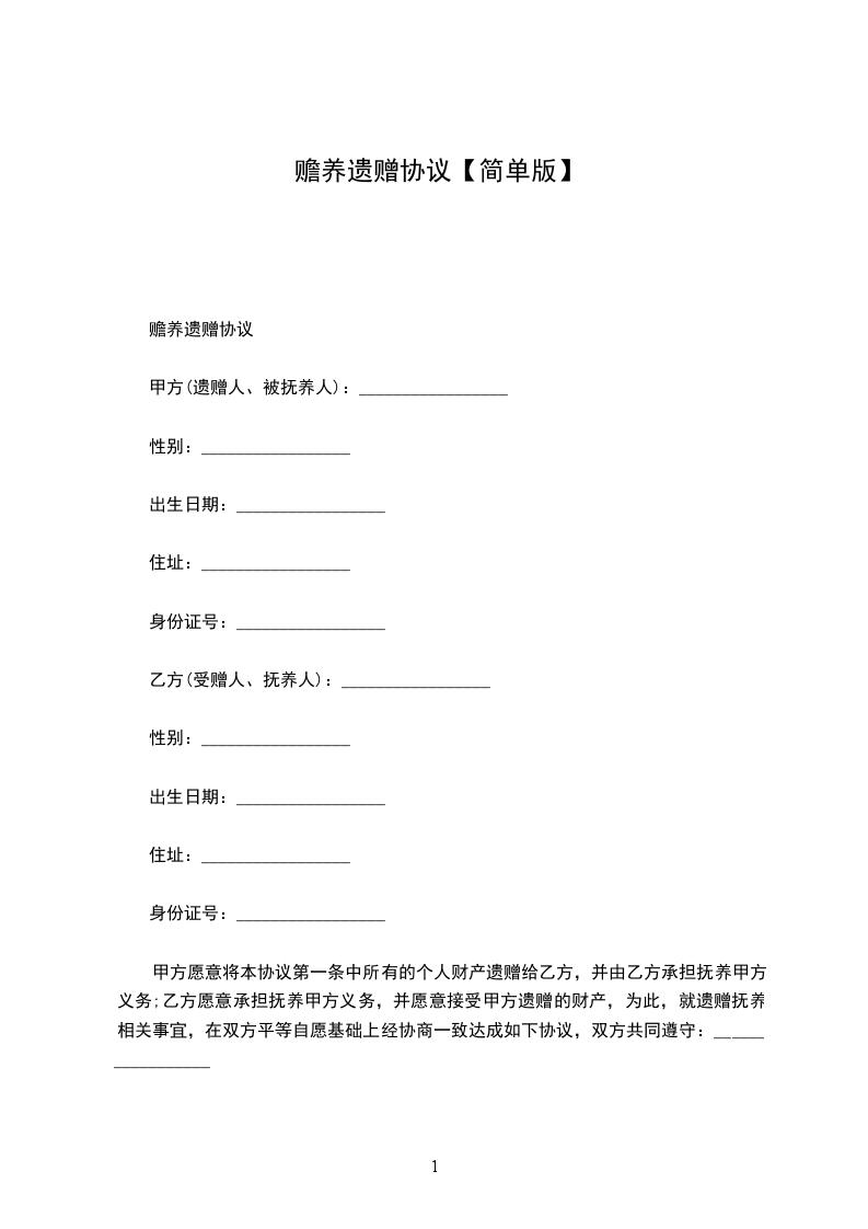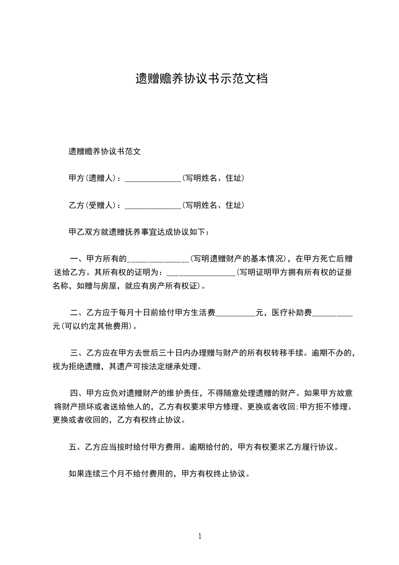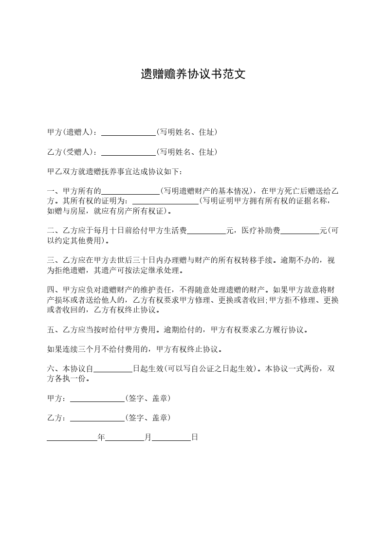 甲乙双方就遗赠抚养事宜达成协议如下: