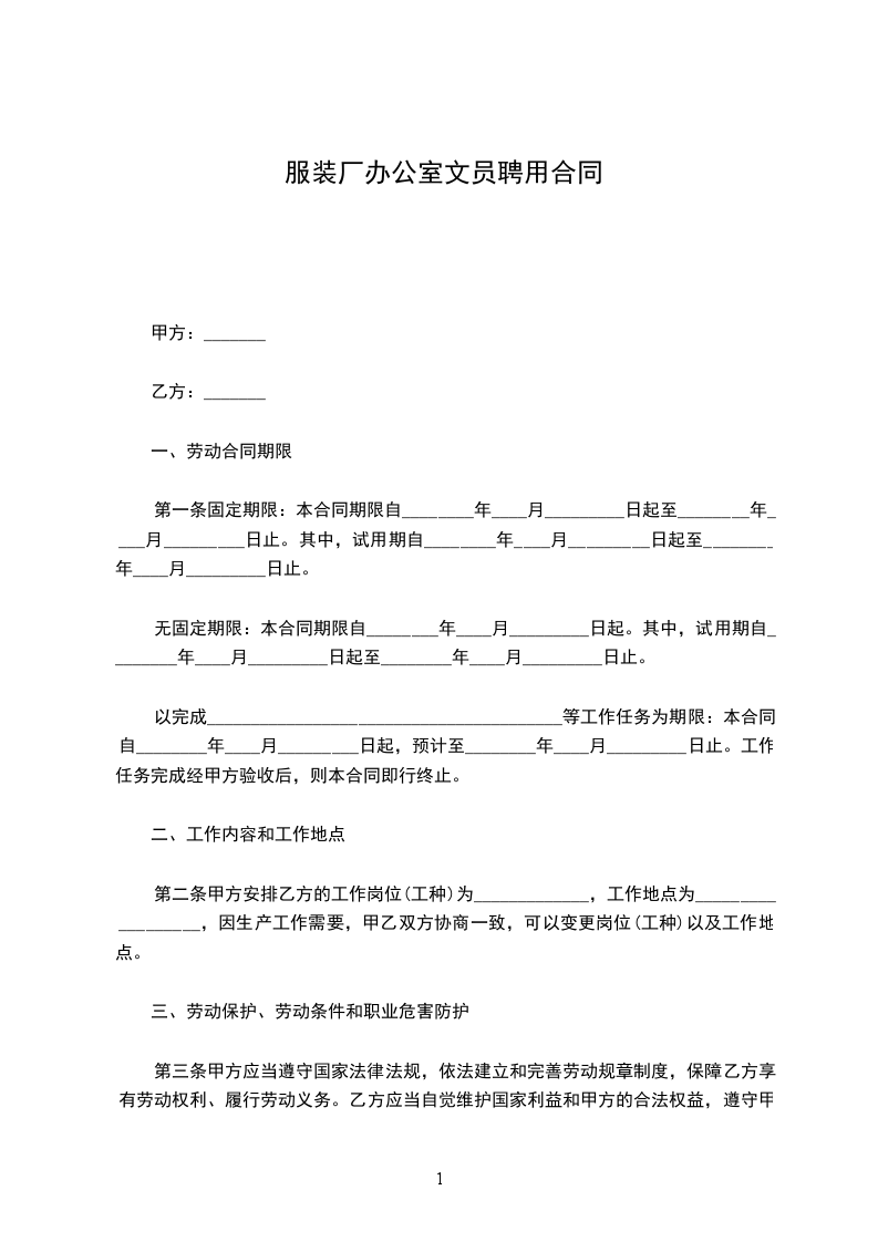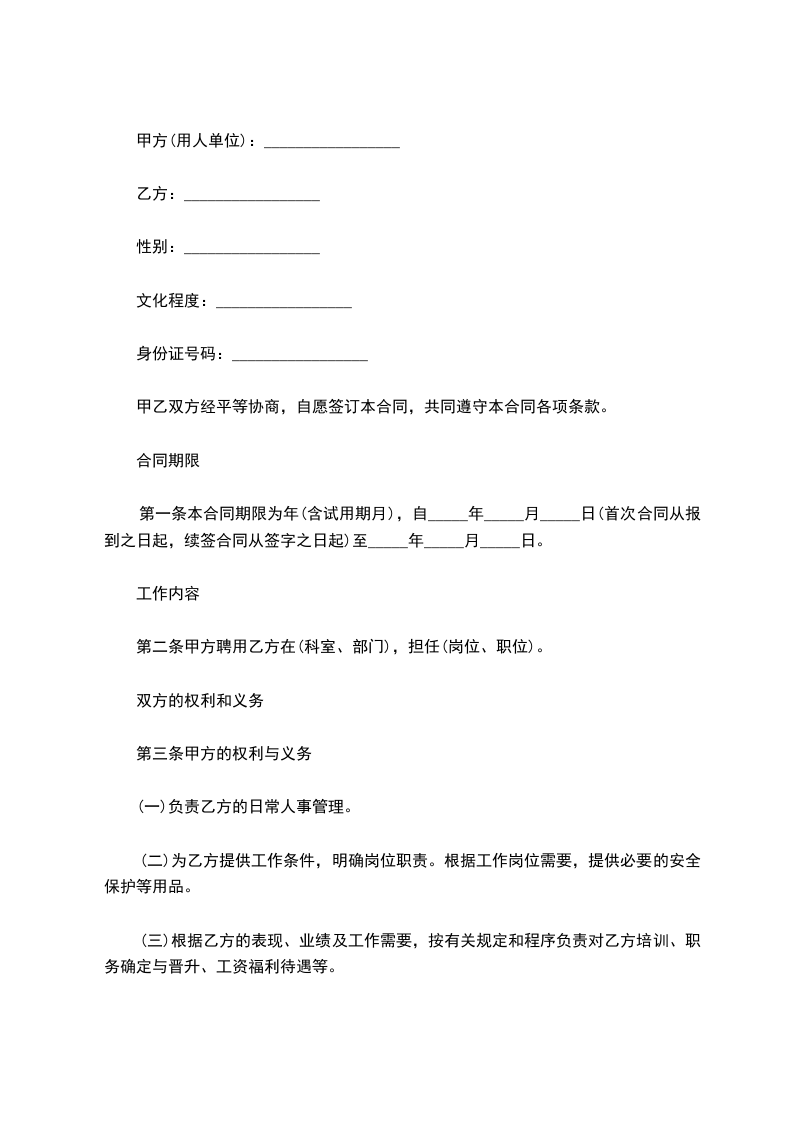 第二条甲方聘用乙方在(科室、部门),担任(岗位、职位)。