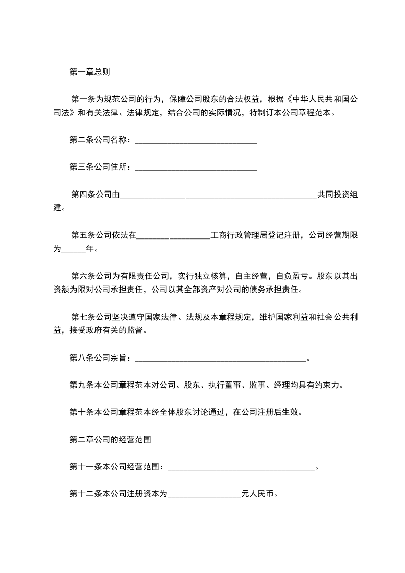 第一条为规范公司的行为,保障公司股东的合法权益,根据《中华人民共和国公司法》和有关法律、法律规定,结合公司的实际情况,特制订本公司章程范本。