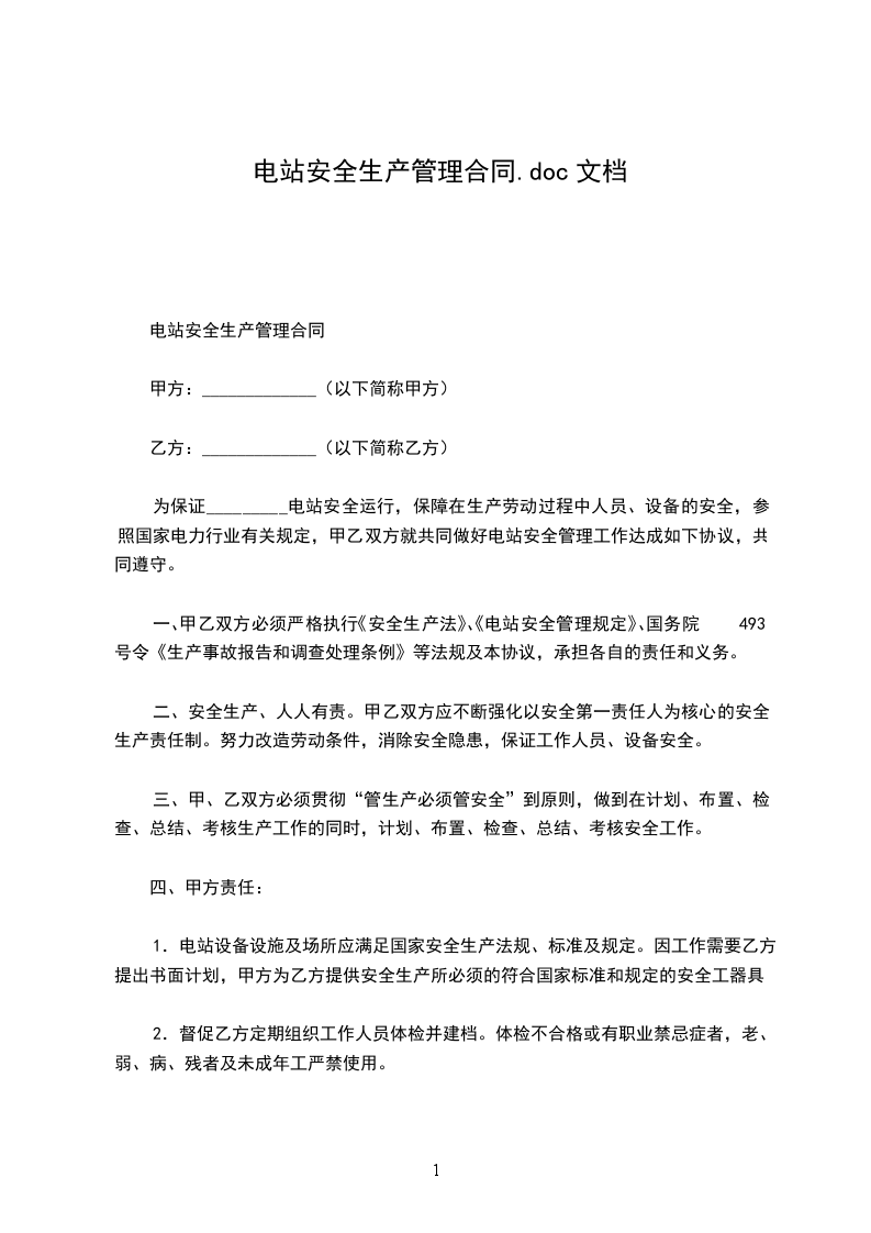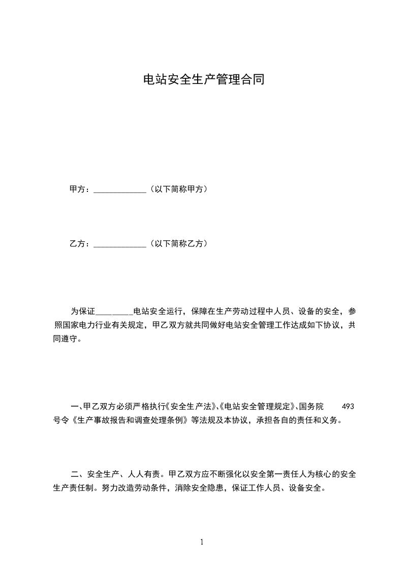 为保证_________电站安全运行,保障在生产劳动过程中人员、设备的安全,参照国家电力行业有关规定,甲乙双方就共同做好电站安全管理工作达成如下协议,共同遵守。