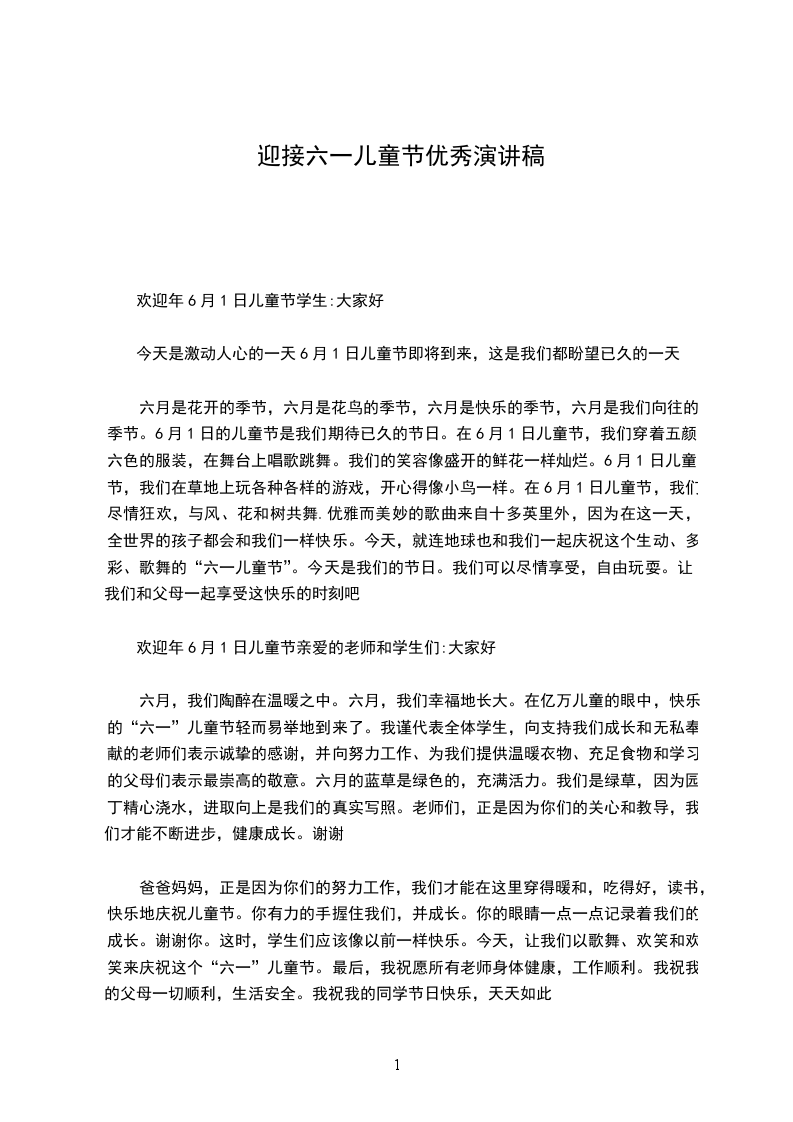 欢迎年6月1日儿童节亲爱的老师和学生们:大家好