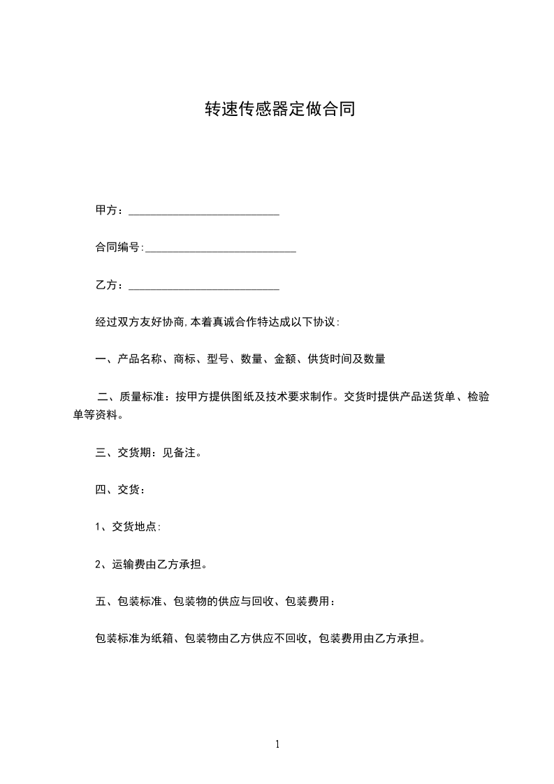 转速传感器制造合同