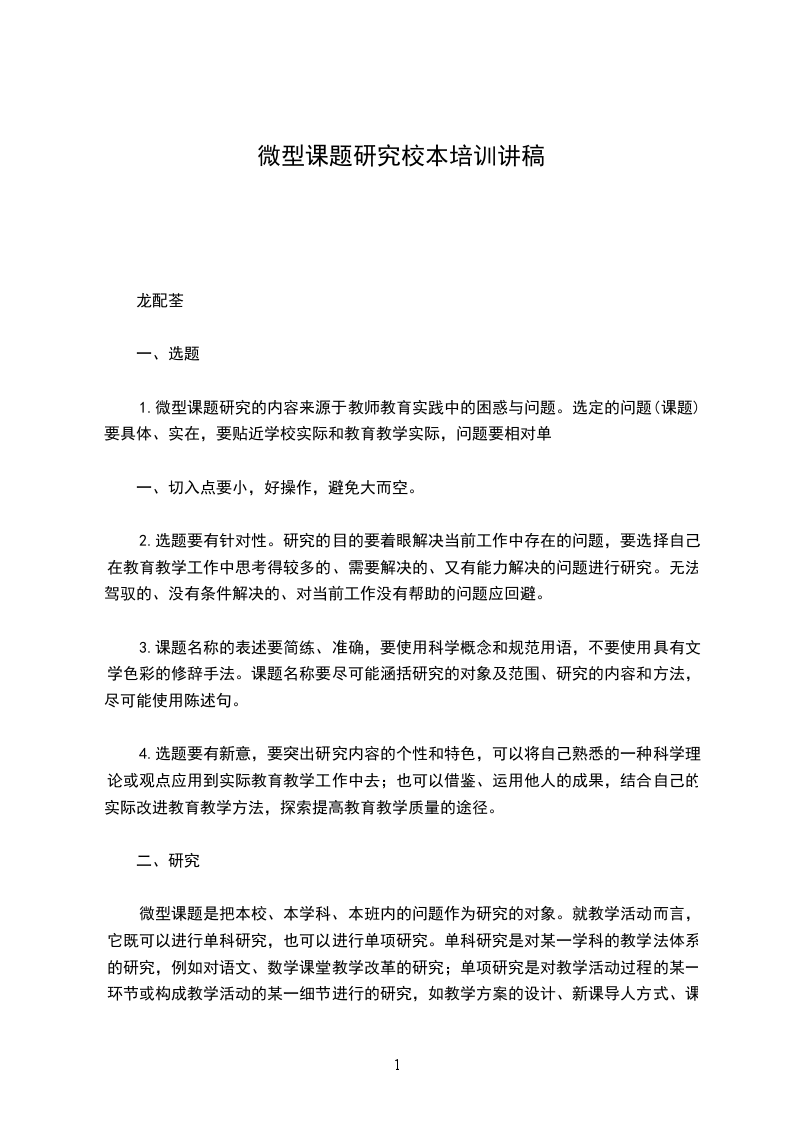 1.微型课题研究的内容来源于教师教育实践中的困惑与问题。选定的问题(课题)要具体、实在,要贴近学校实际和教育教学实际,问题要相对单
