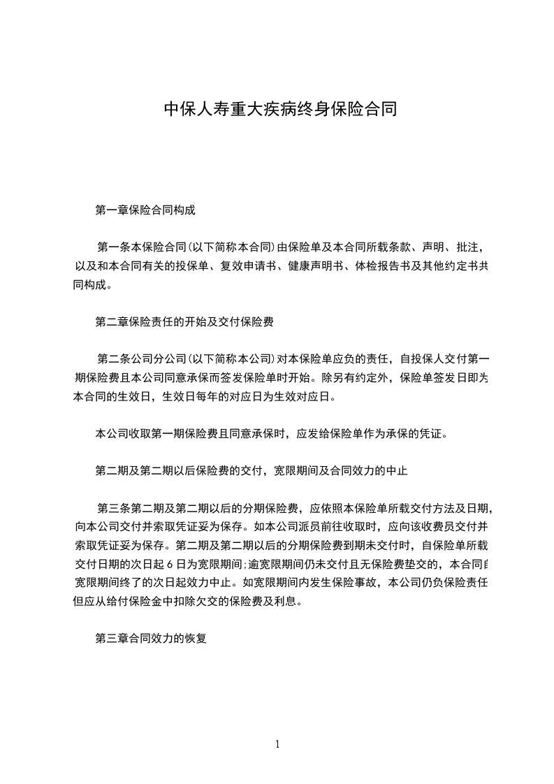 第一条本保险合同(以下简称本合同)由保险单及本合同所载条款、声明、批注,以及和本合同有关的投保单、复效申请书、健康声明书、体检报告书及其他约定书共同构成。