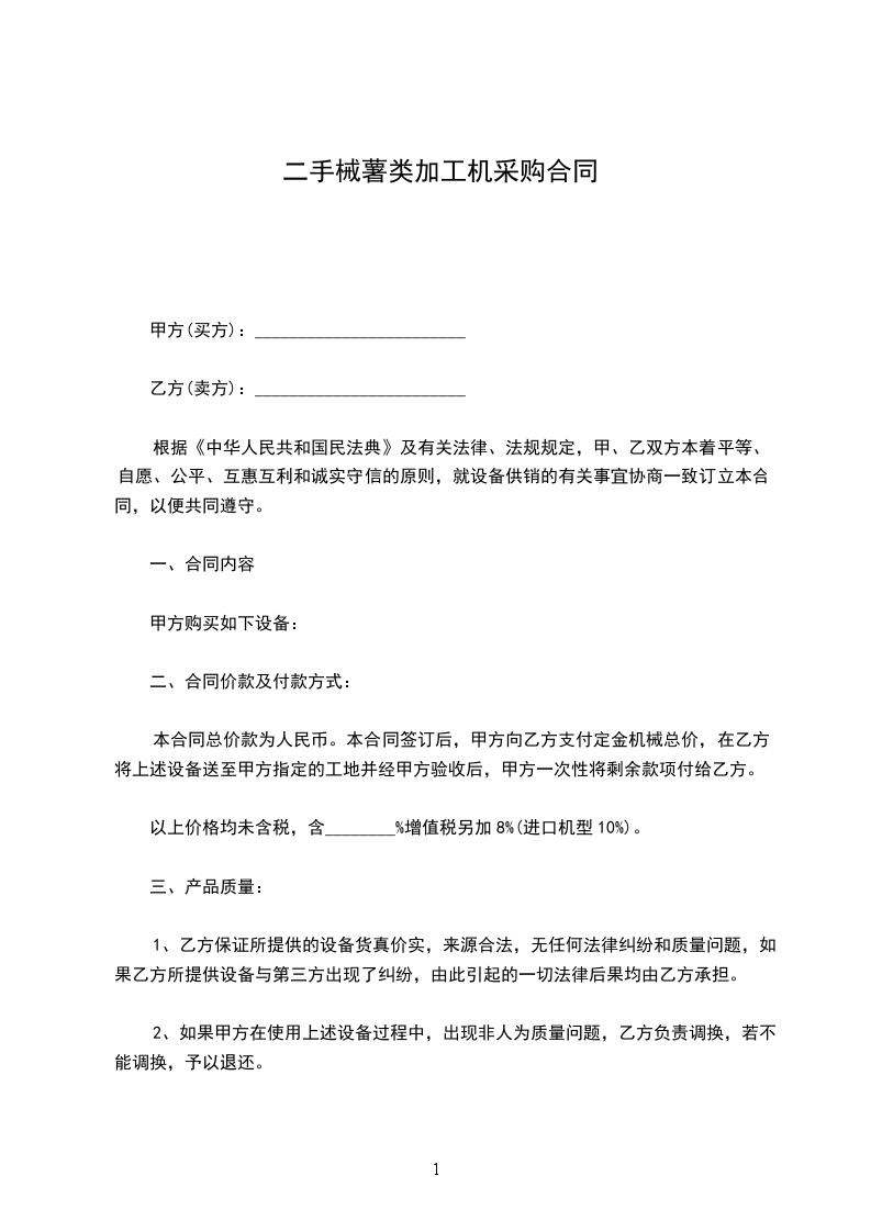 出卖方愿意出售,买受方愿意购买下列设备: