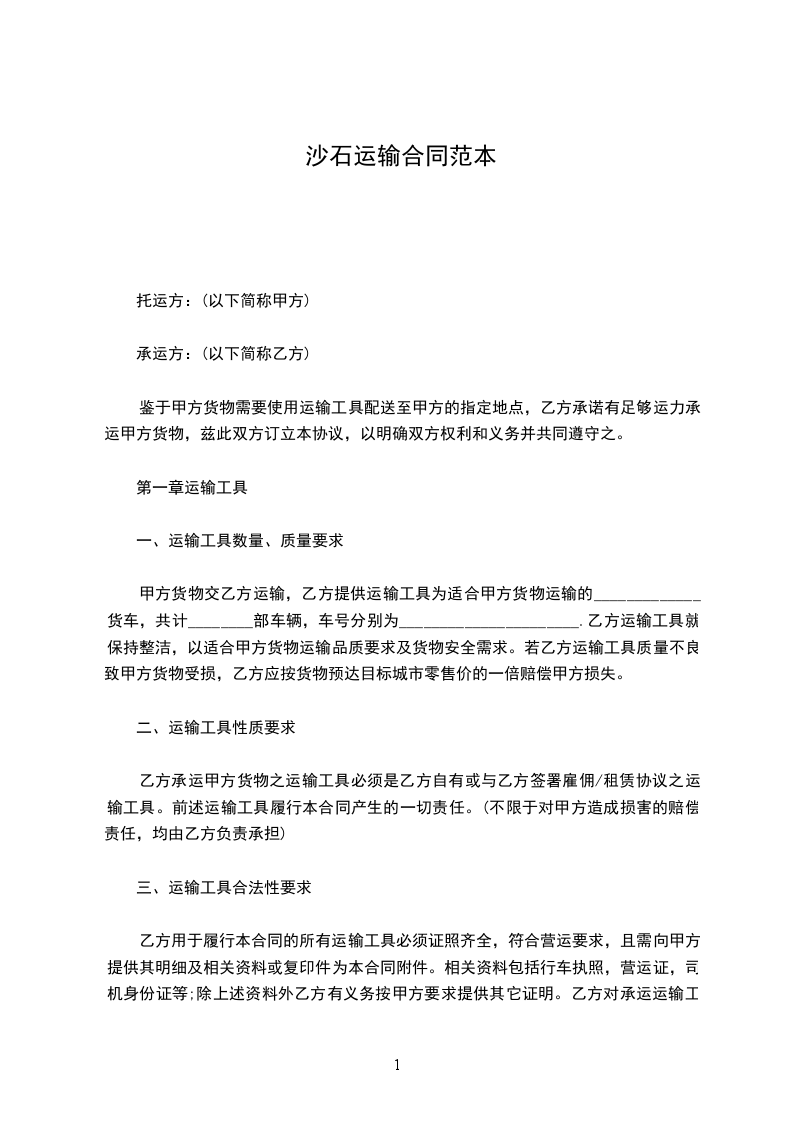 甲方货物交乙方运输,乙方提供运输工具为适合甲方货物运输的_____________货车,共计________部车辆,车号分别为______________________.乙方运输工具就保持整洁,以适合甲方货物运输品质要求及货物安全需求。若乙方运输工具质量不良致甲方货物受损,乙方应按货物预达目标城市零售价的一倍赔偿甲方损失。
