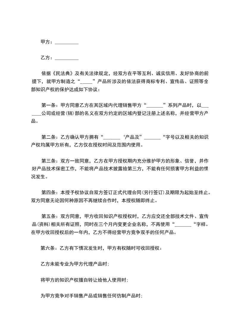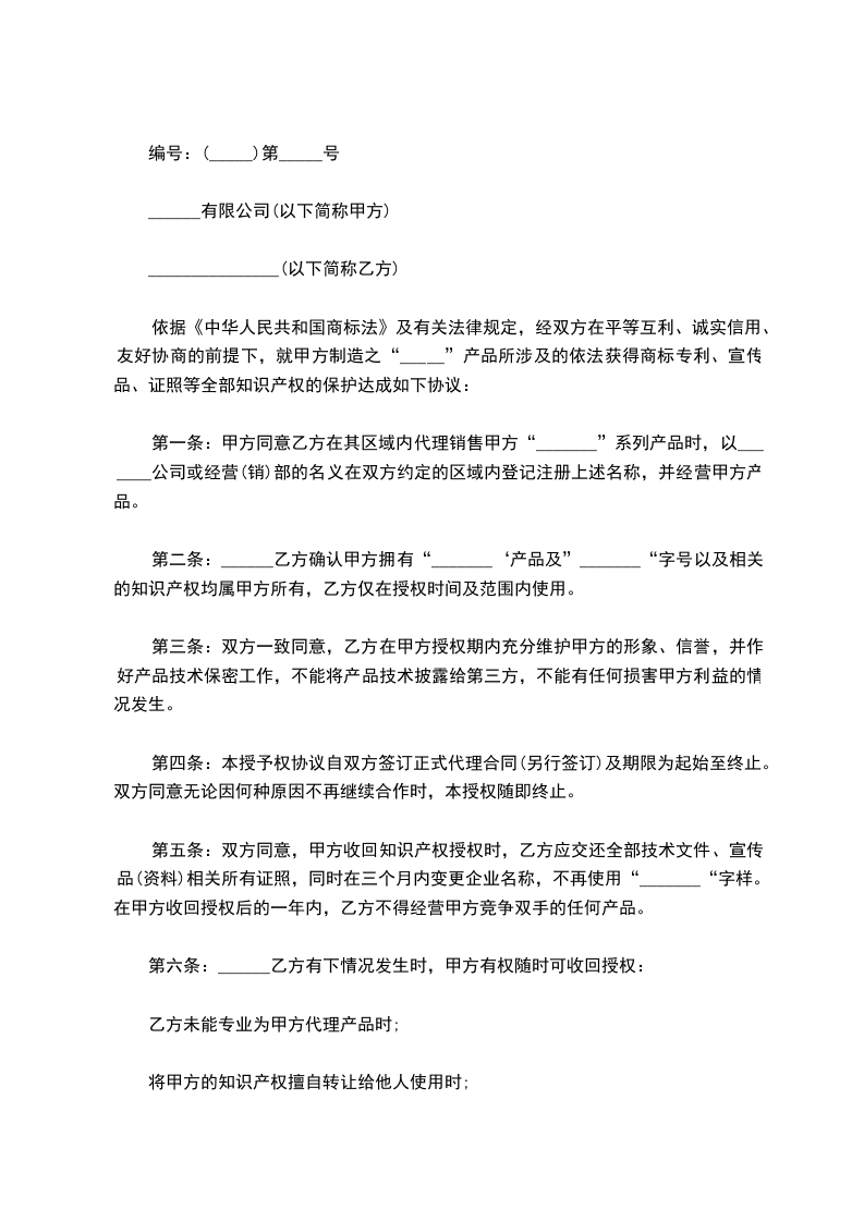 7、乙方不得将甲方的商号或与甲方商号相近(或相似)的标识用于申请注册商标。