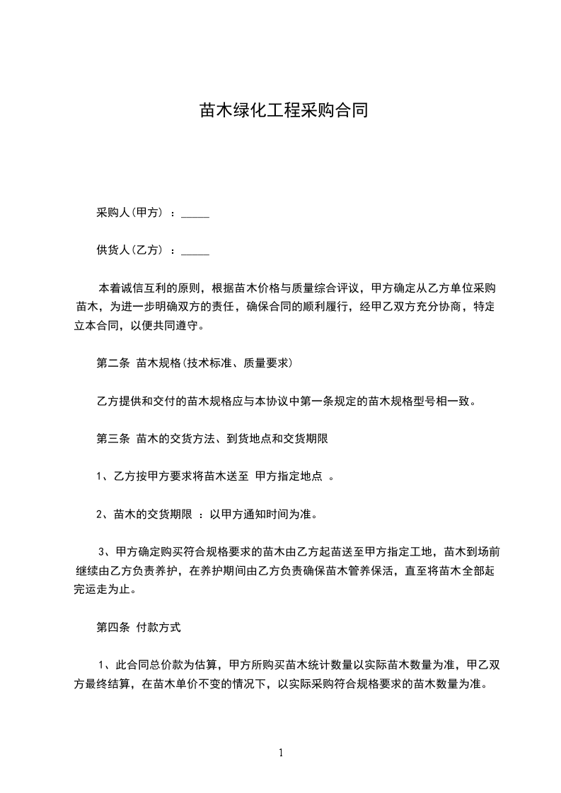 四、付款时间及方式:_________________乙方凭甲方出具的苗木验收单及苗木发票进行结账。苗木款于_____年_____月_____日内结清。