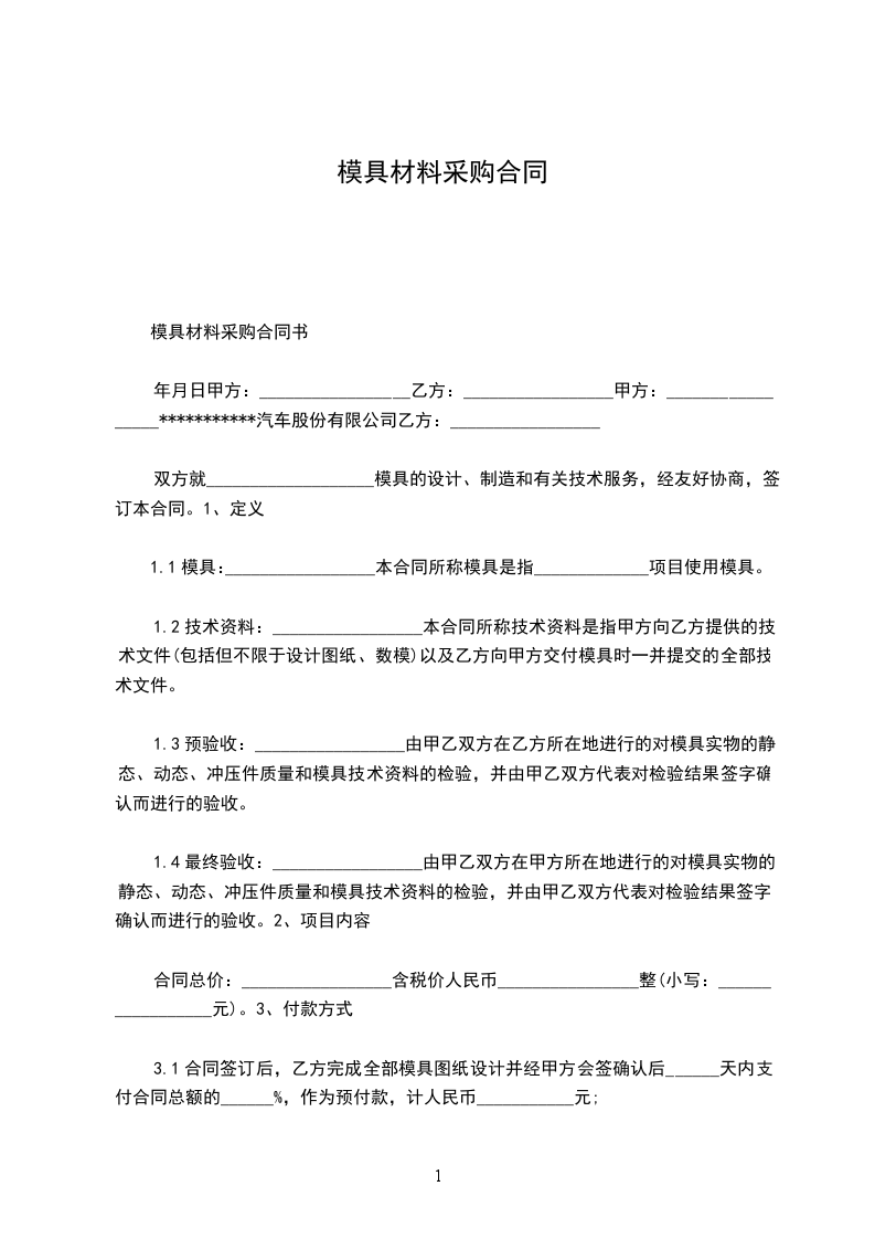 1.1模具:_________________本合同所称模具是指_____________项目使用模具。
