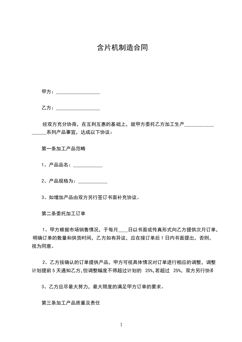 含片机制造合同