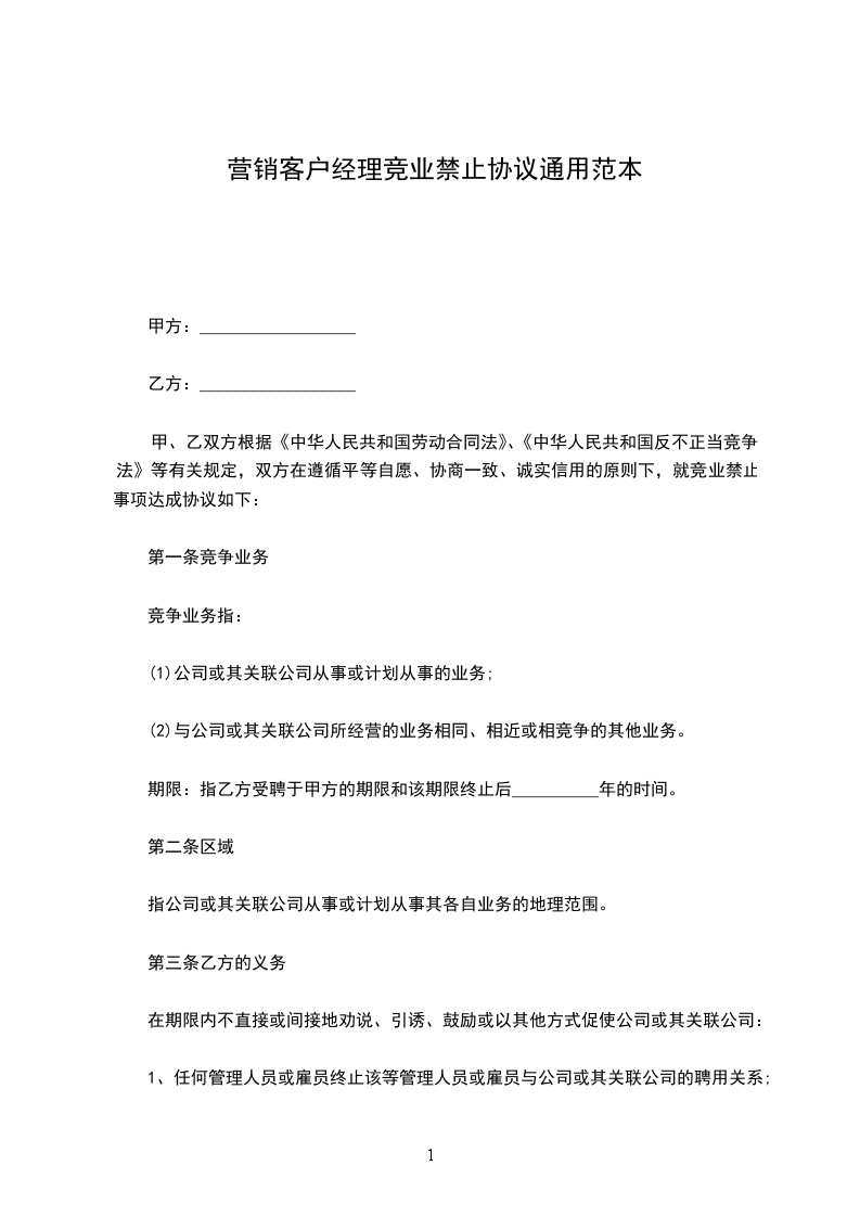 2、不论因何种原因从甲方离职,离职后____年内(自劳动关系解除之日起计算,到劳动关系解除____年后的次日止)都不得到与甲方有竞争关系的单位就职。上述单位包括但不限于下列单位:同行业、与本公司有竞争关系且本公司认为已经成为或者可能成为竞争对手的各类企业。