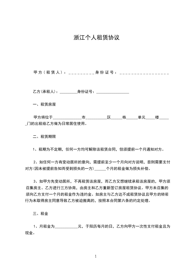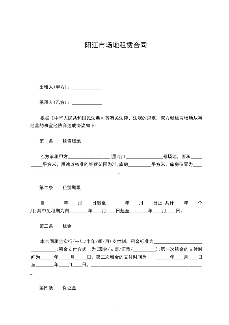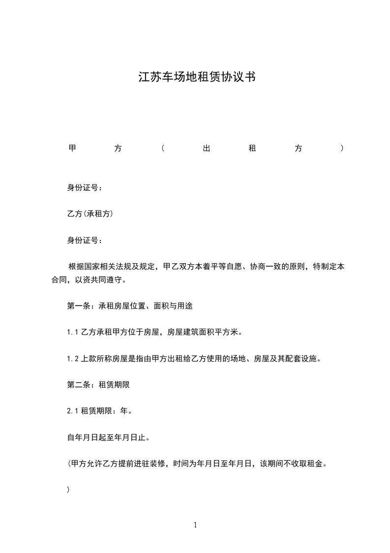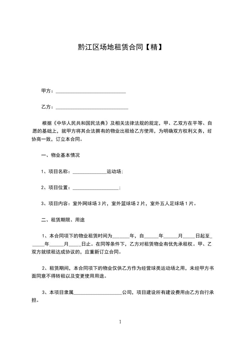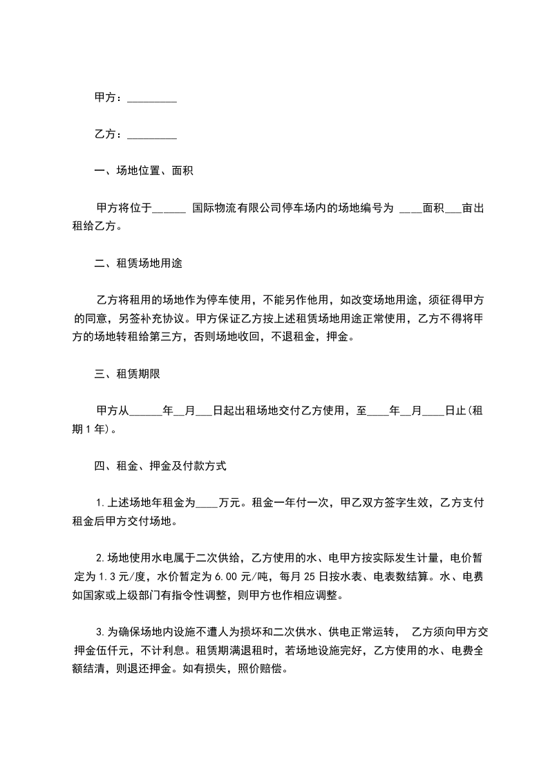 ____年_____月_____日 为您准备的浙江场地租赁合同范本,希望您能满意