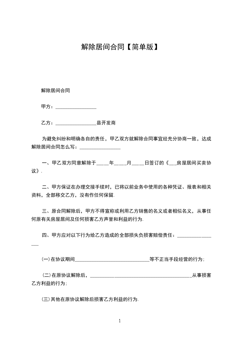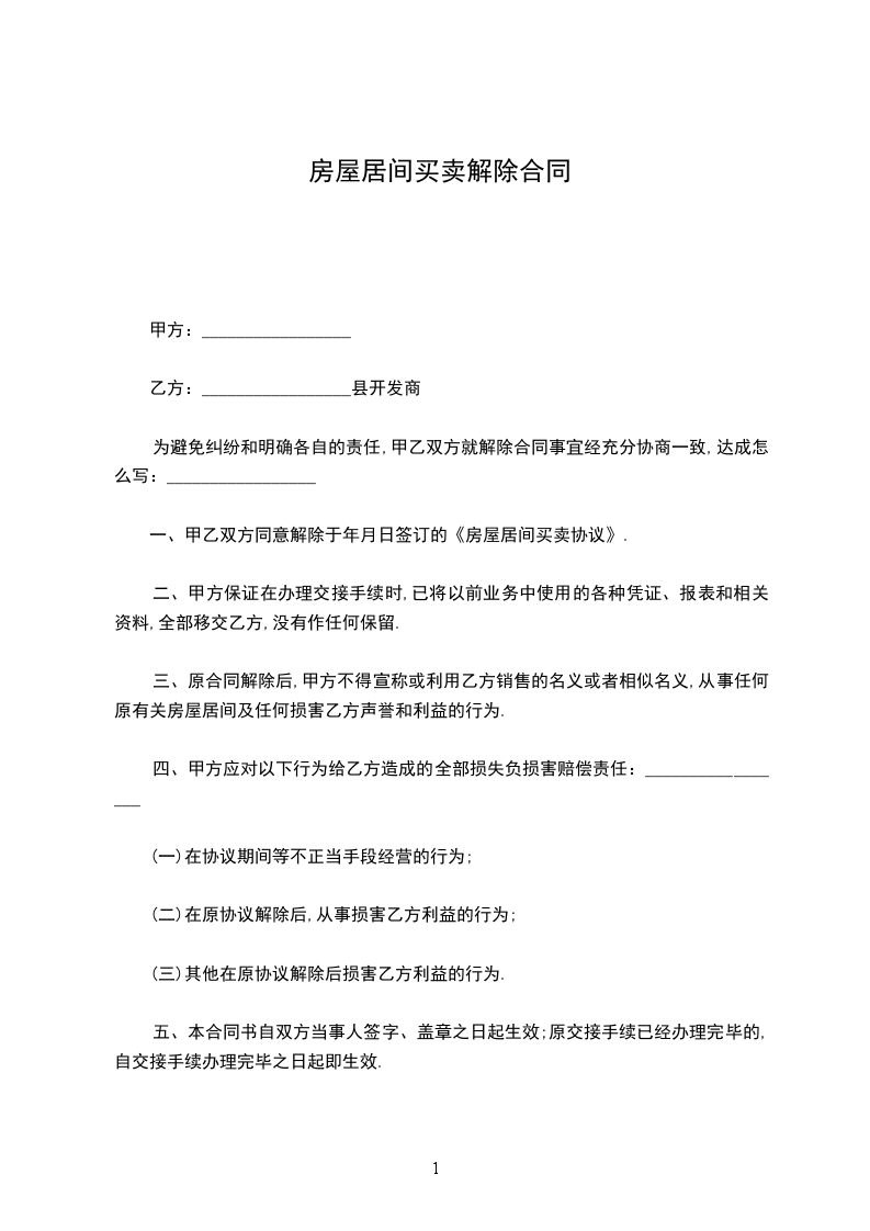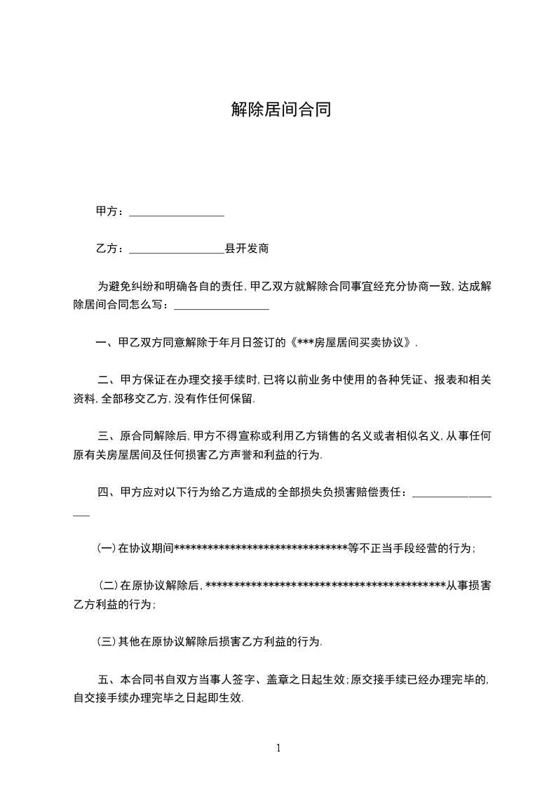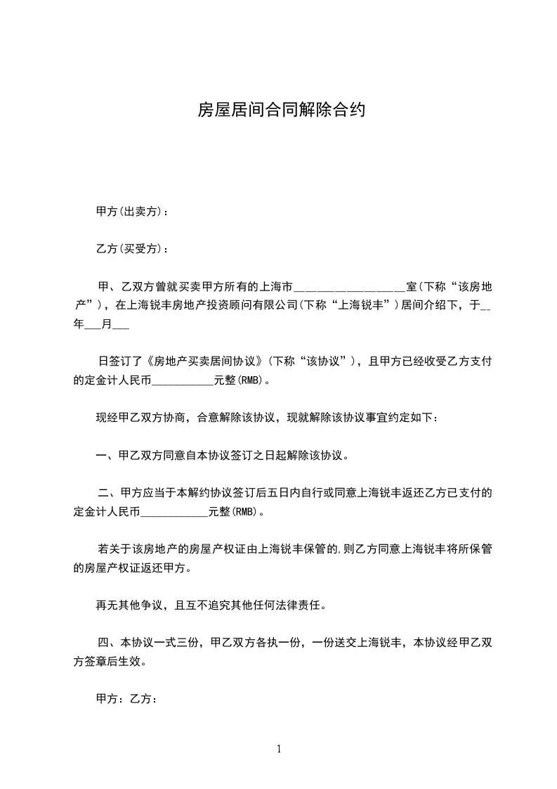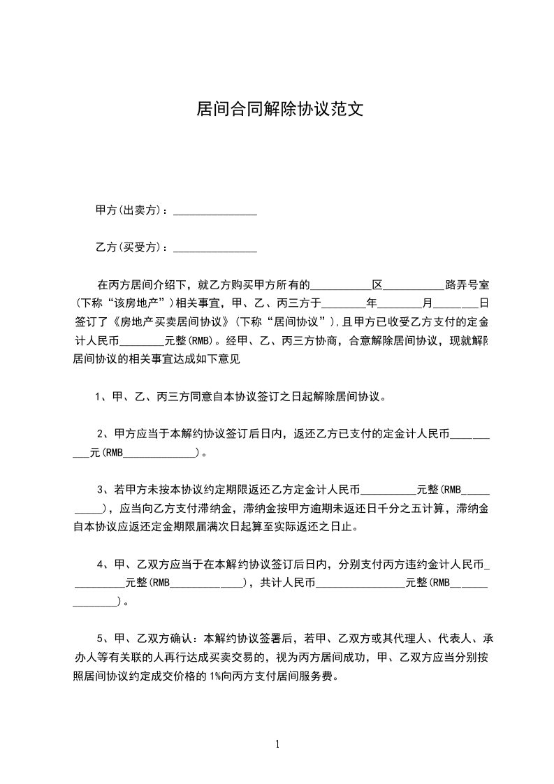 一、甲乙双方同意解除于_____年_____月_____日签订的《***房屋居间买卖协议》.