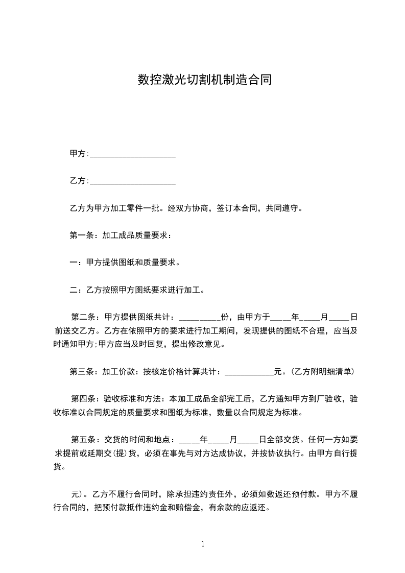 乙方承诺提供给甲方的产品是合格的,符合甲方图纸及技术要求的。甲方将根据不合格情况扣除不合格产品全部或者部分款项。