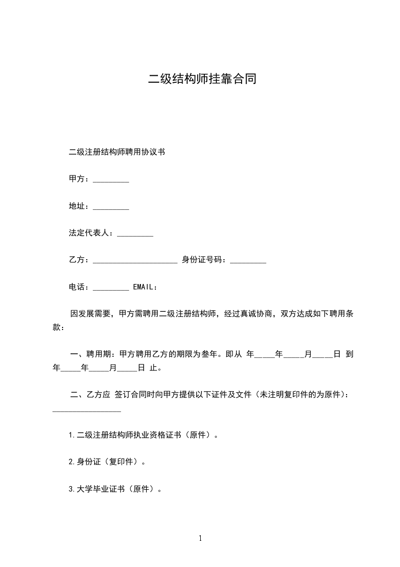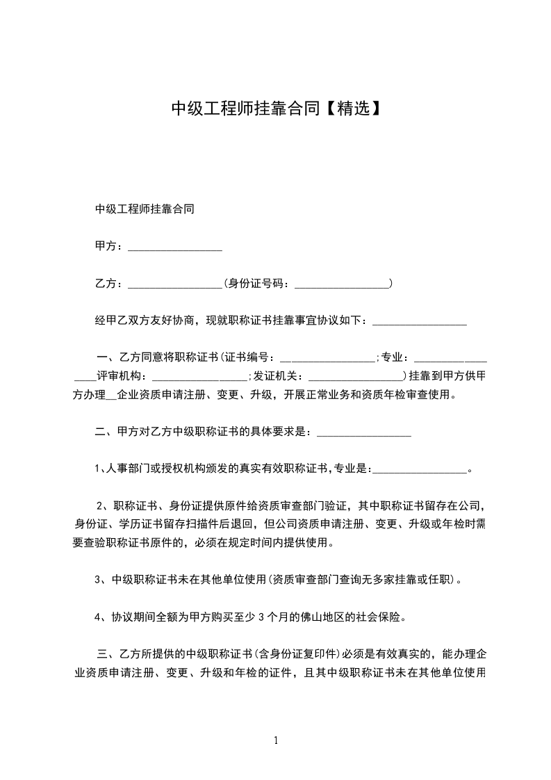 一、乙方同意将职称证书(证书编号:_________________;专业:_________________评审机构:_________________;发证机关:_________________)挂靠到甲方供甲方办理**企业资质申请注册、变更、升级,开展正常业务和资质年检审查使用。