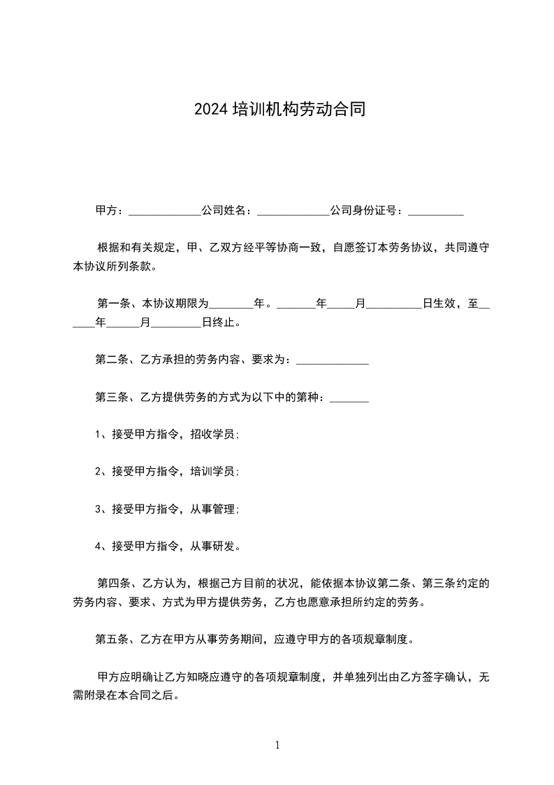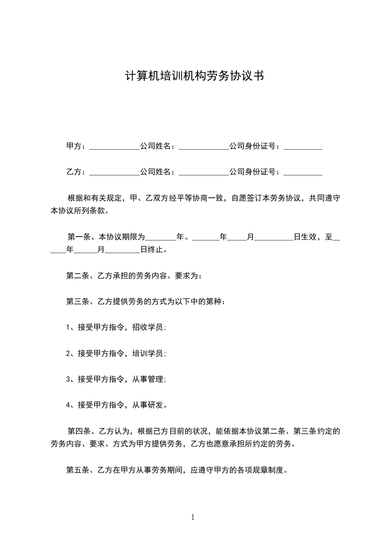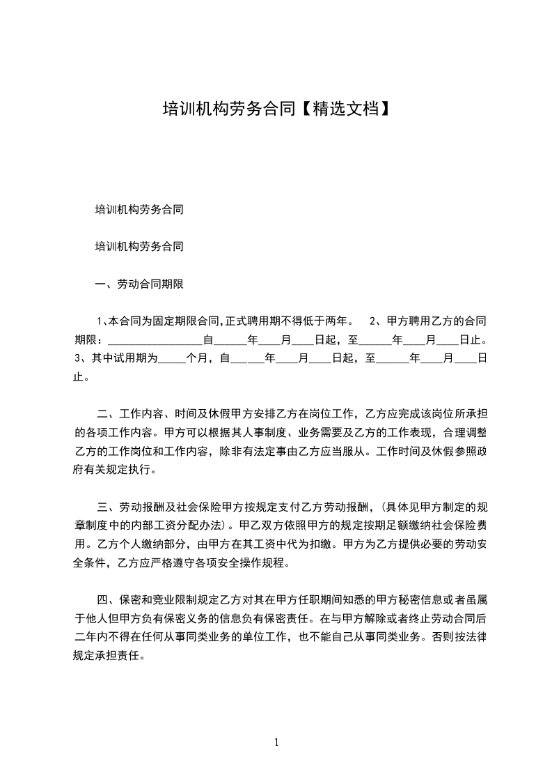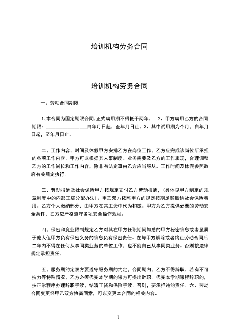 培训机构劳务合同