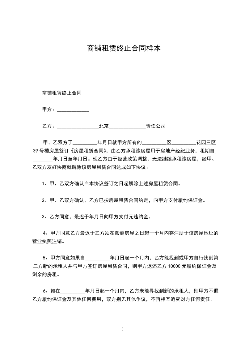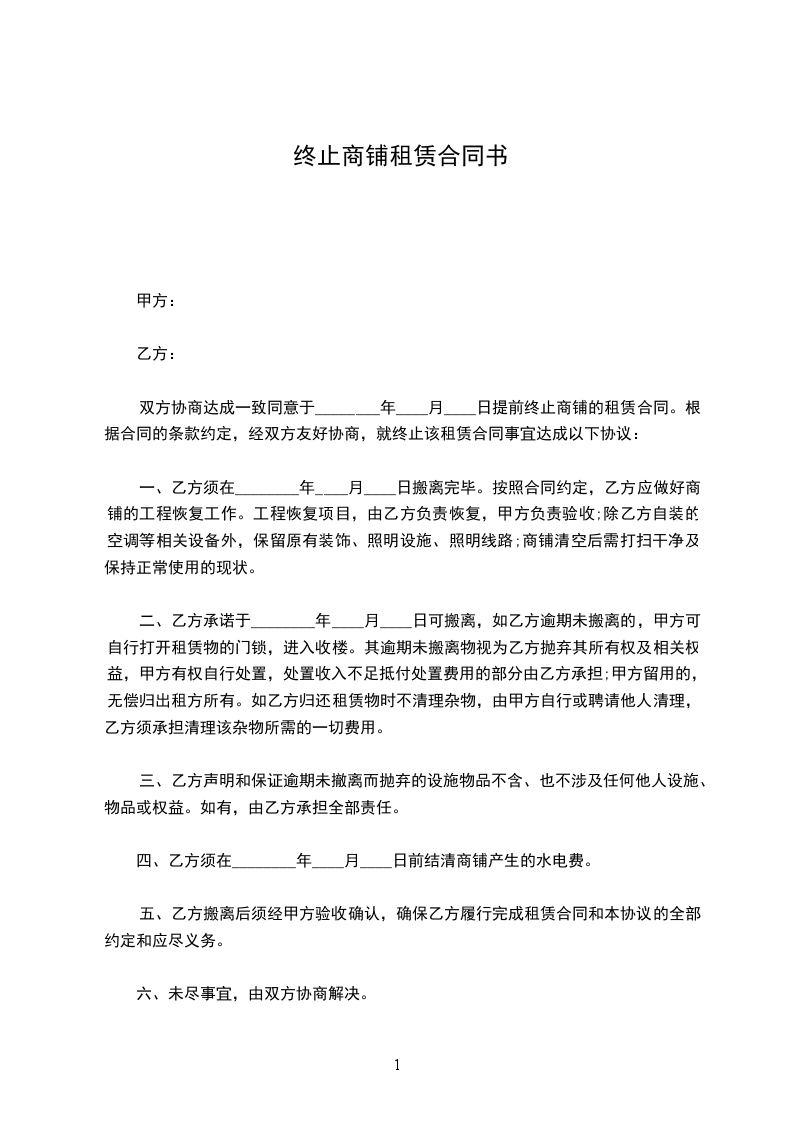 商铺租赁终止合同