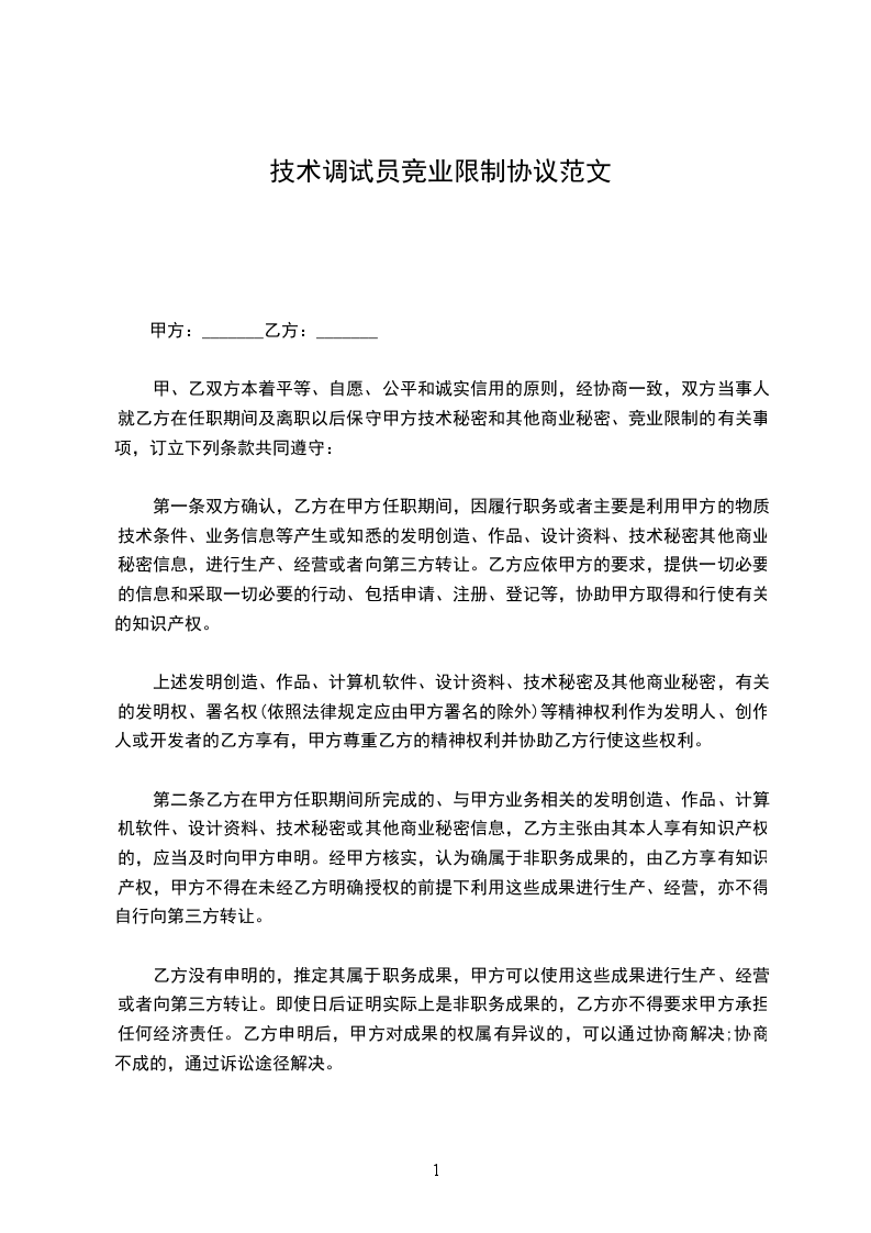 调试工程师竞业限制协议