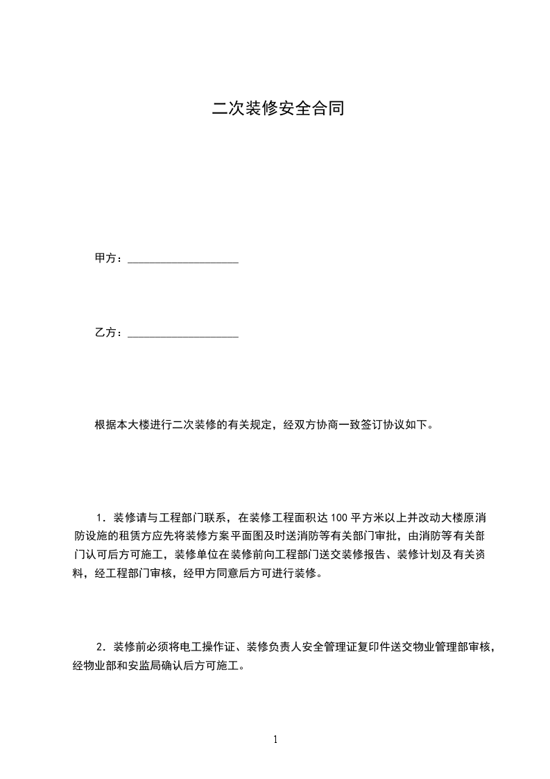 根据本大楼进行二次装修的有关规定,经双方协商一致签订协议如下。