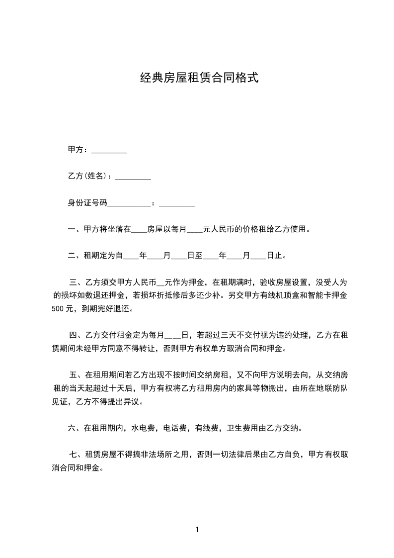 10、甲方不得单方解除合同,如有特殊原因,需提前一个月以书面形式通知对方,以便乙方安排客户,并支付一个月房租作为赔偿。