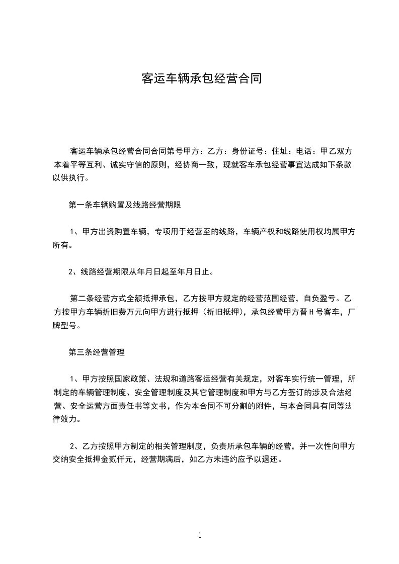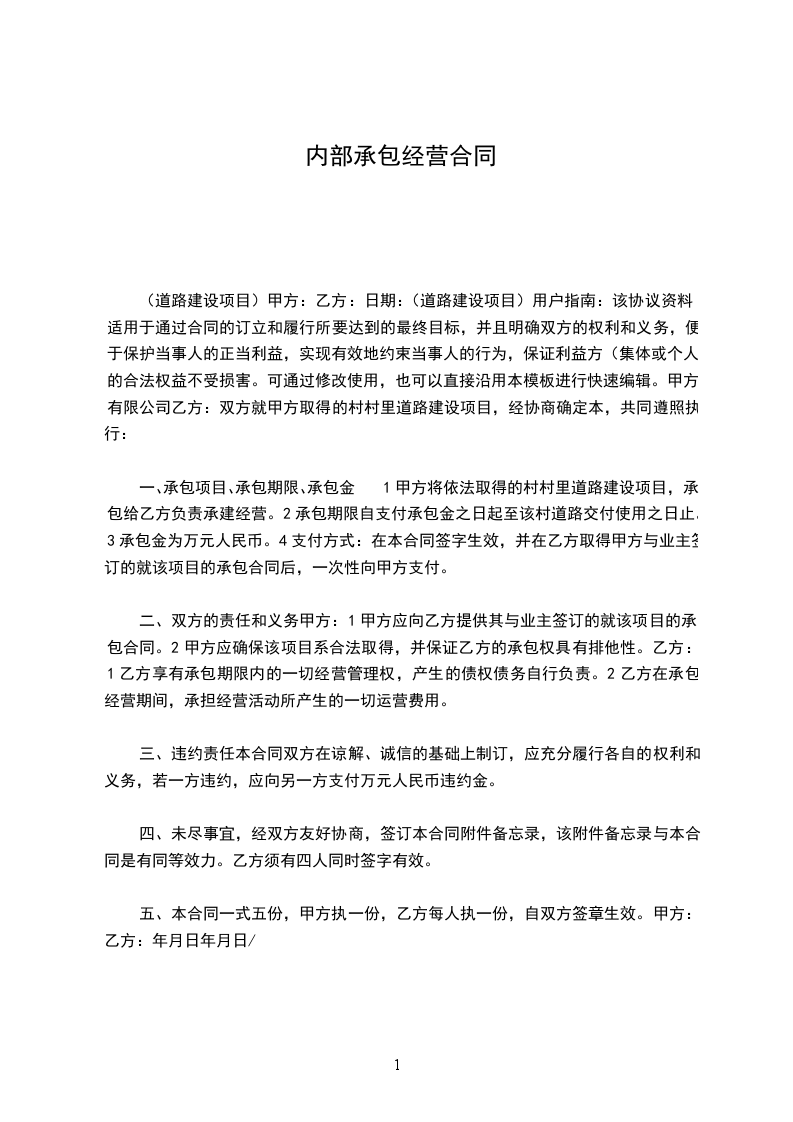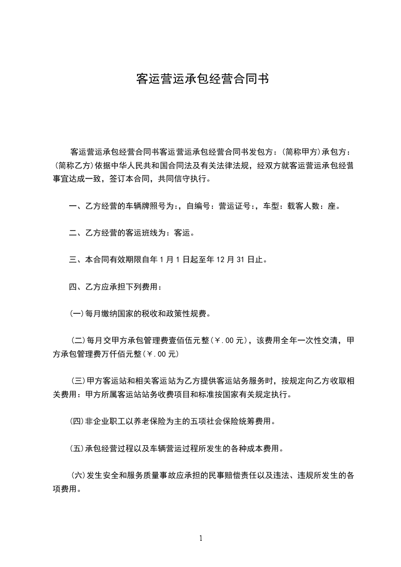 1.承包期限:为_____年。自____年_____月_____日起至____年_____月_____日止。