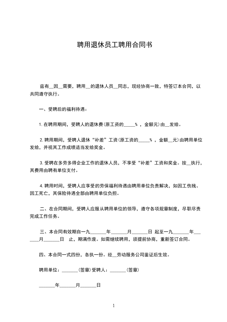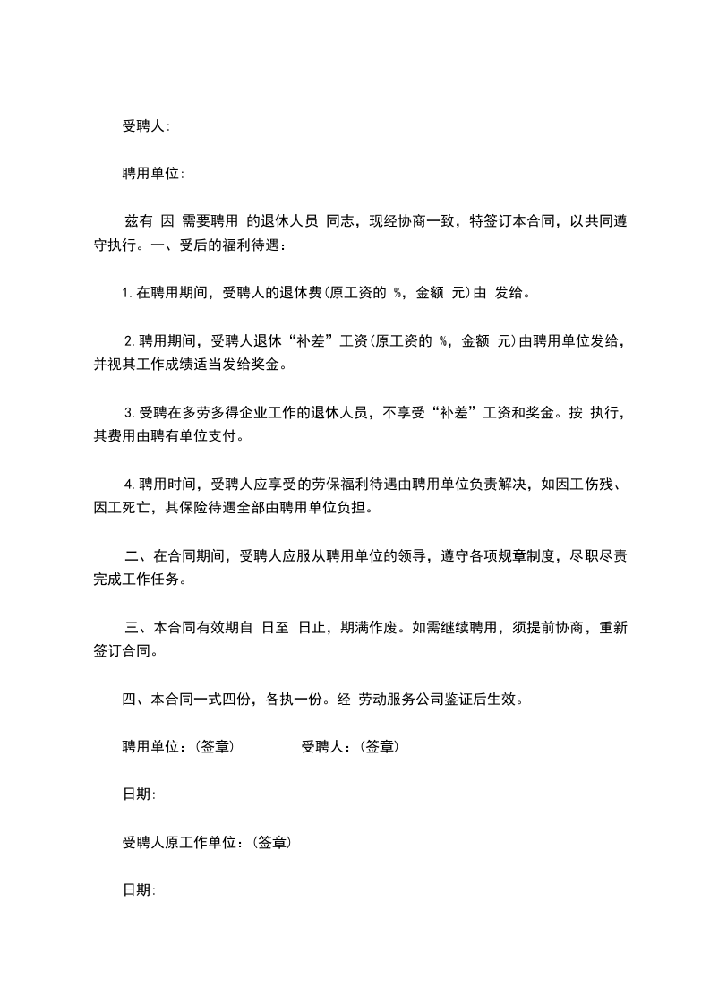 2、返聘期间乙方参照甲方在职职工的标准享受福利。