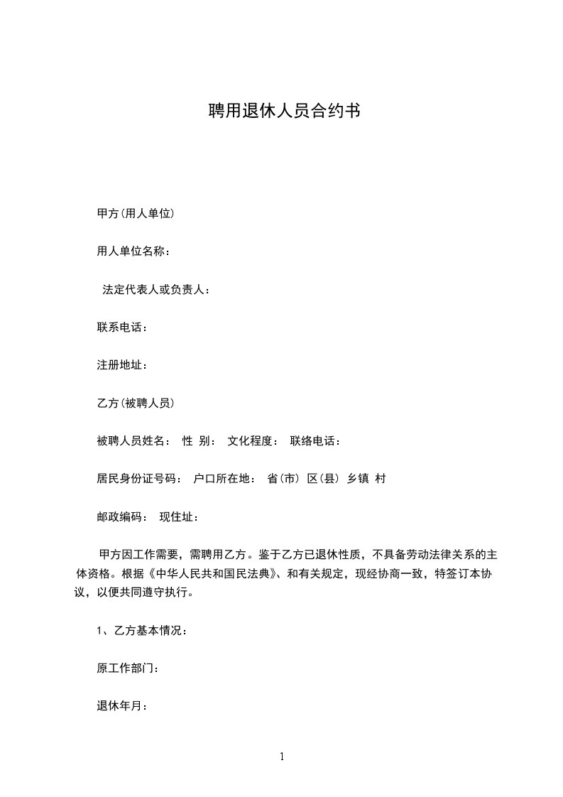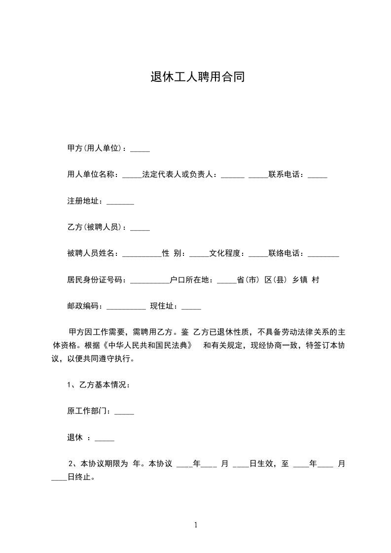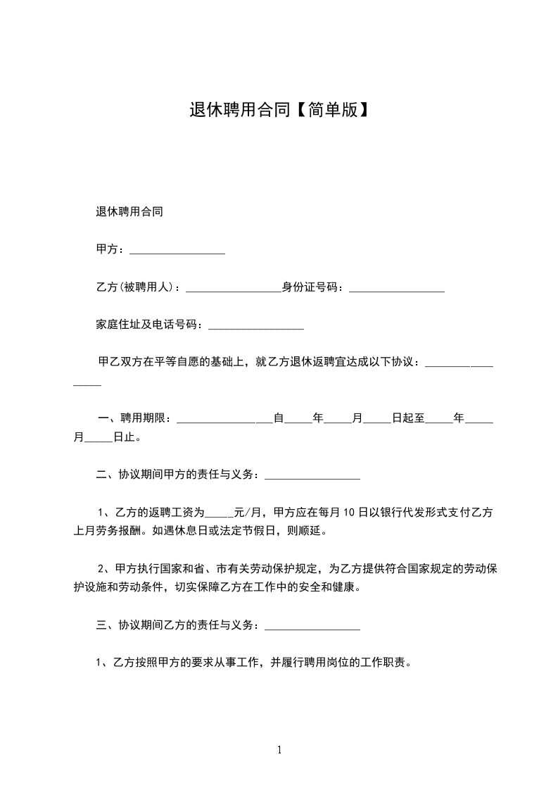 甲乙双方在平等自愿的基础上,就乙方退休返聘宜达成以下协议:_________________