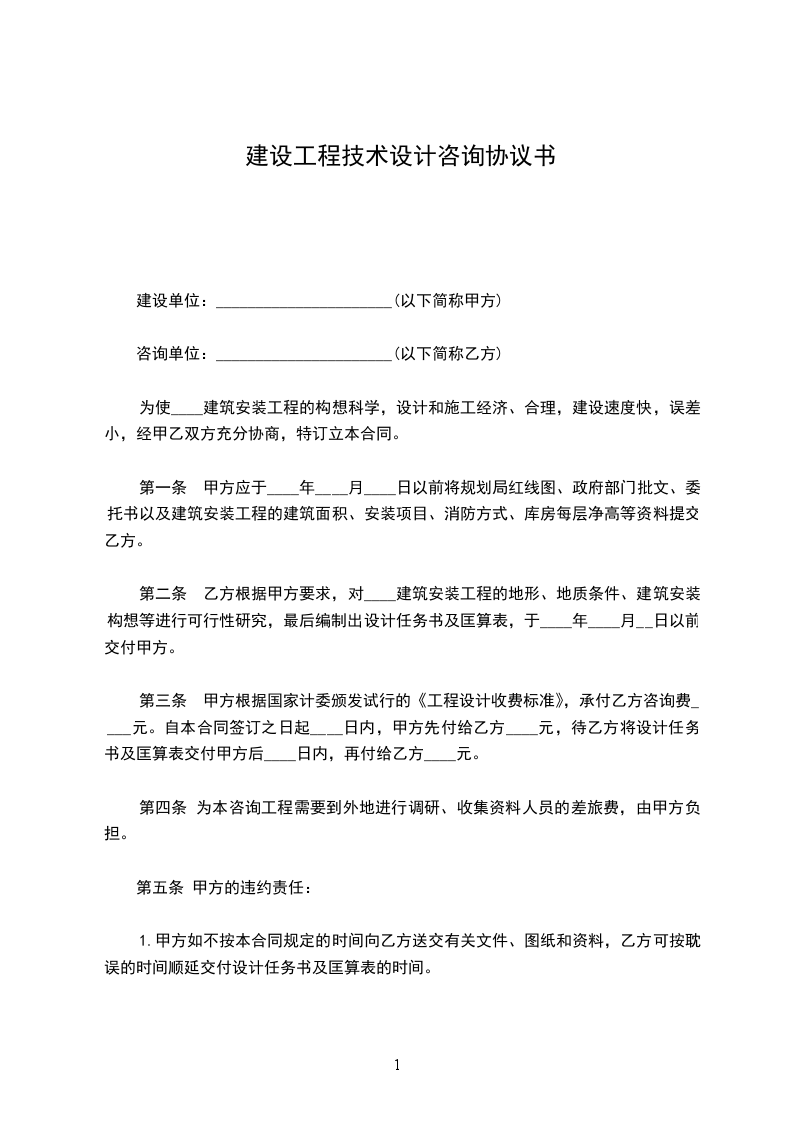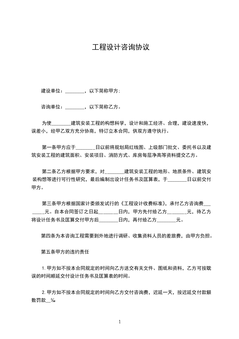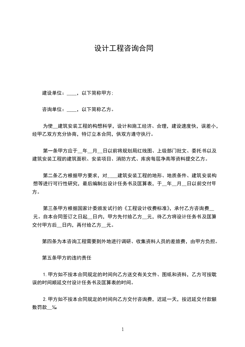 1)乙方收到设计、咨询服务费定金第二日跟据甲方提供的原始建筑图纸及现场照片展开设计、咨询服务工作。甲乙双方约定,本阶段设计方案应于本合同签订之日起_____日内完成。
