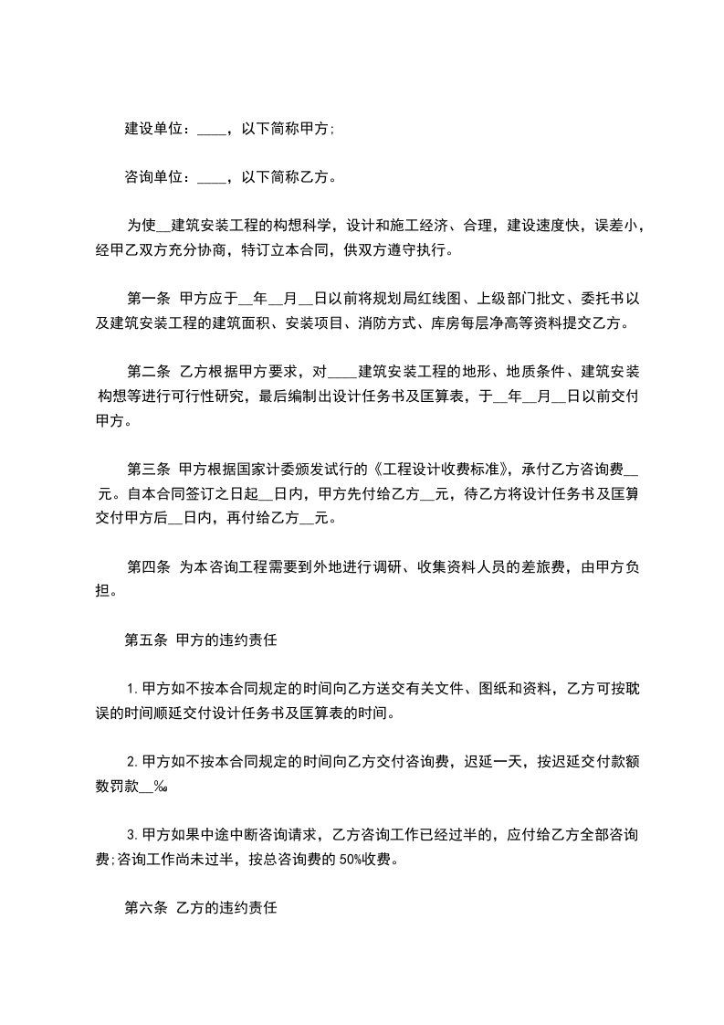 六.如乙方未能于双方约定完成设计咨询服务工作,双方约定甲方根据乙方延迟设计咨询服务工作总额的3‰/日扣除乙方设计、咨询服务费。