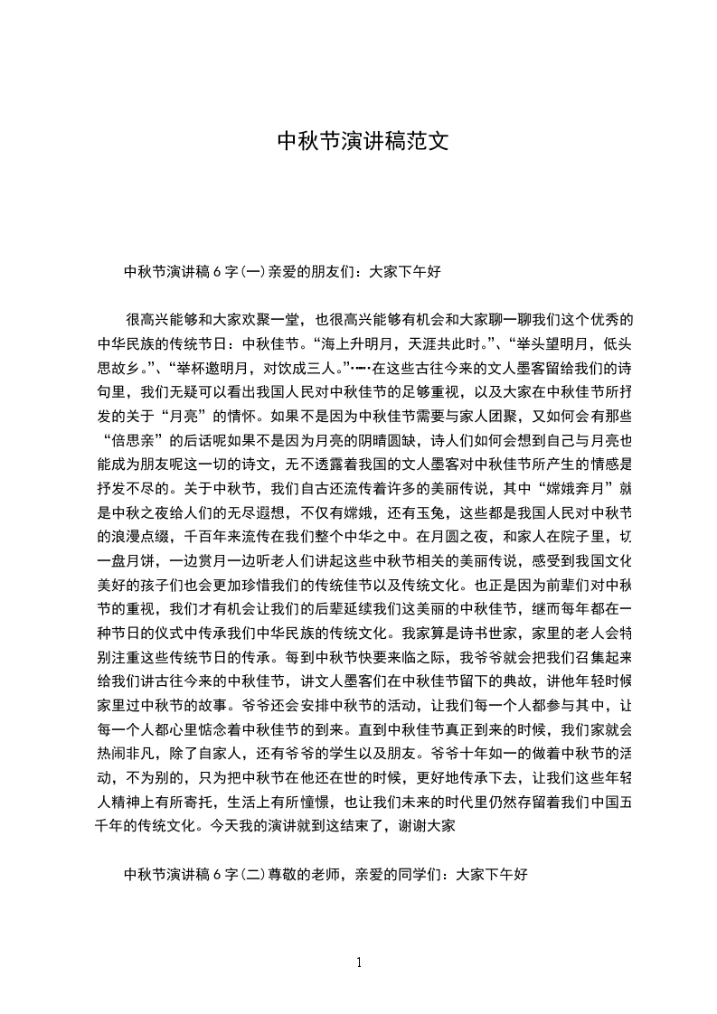 中秋节演讲稿6字(二)尊敬的老师,亲爱的同学们:大家下午好
