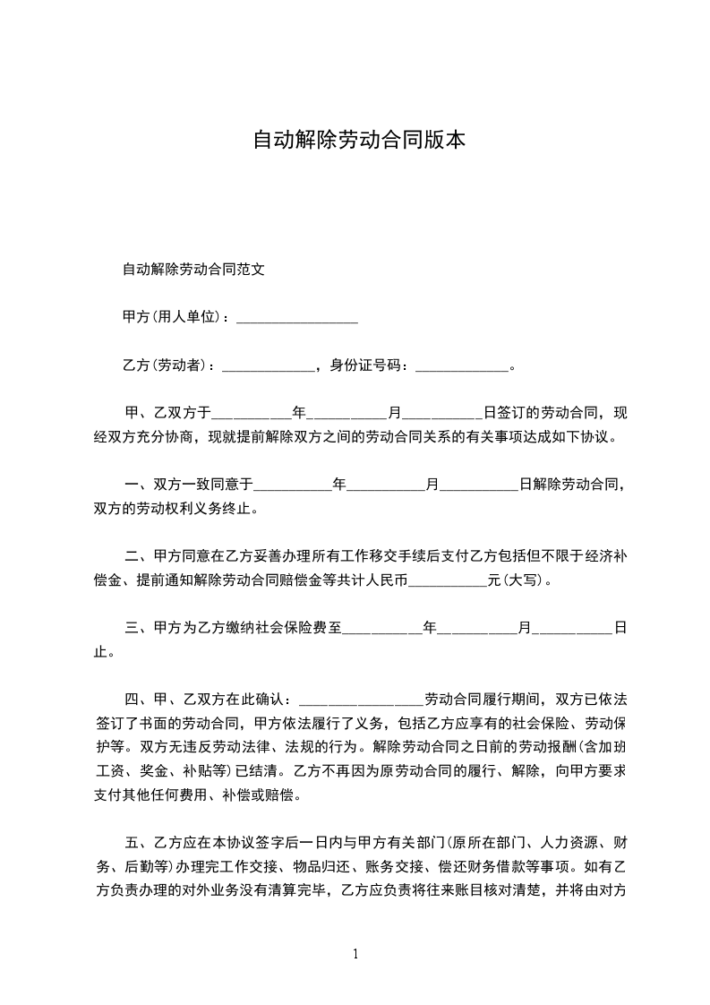 一、双方一致同意于___________年___________月___________日解除劳动合同,双方的劳动权利义务终止。