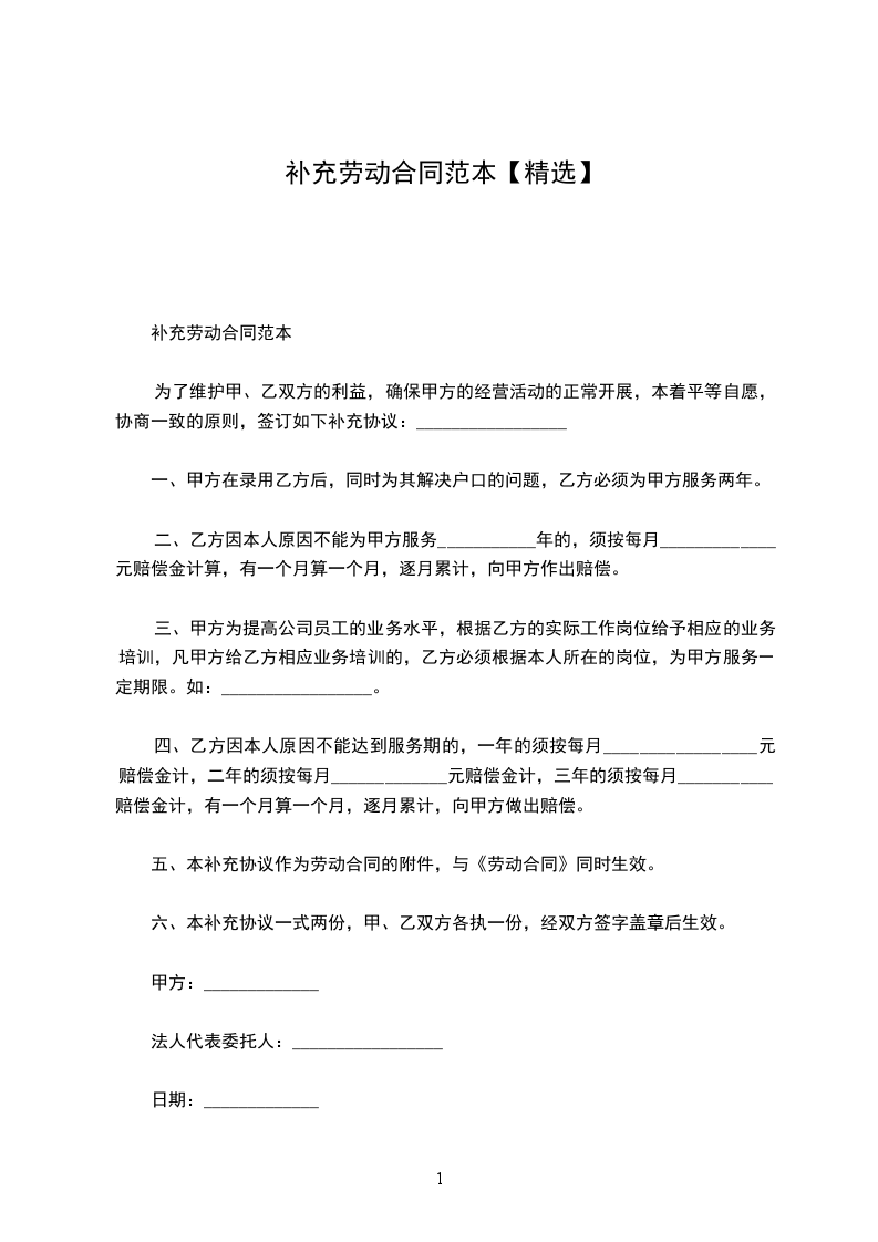为了维护甲、乙双方的利益,确保甲方的经营活动的正常开展,本着平等自愿,协商一致的原则,签订如下补充协议:_________________