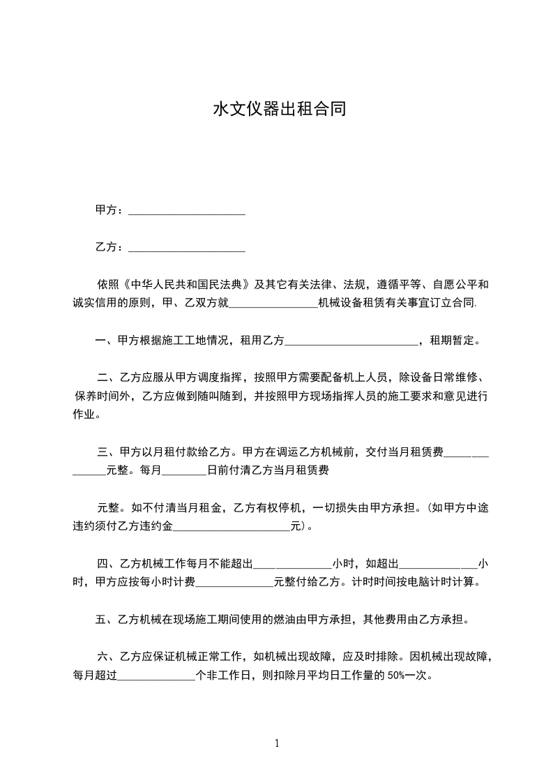 出租方(乙方):_____________________