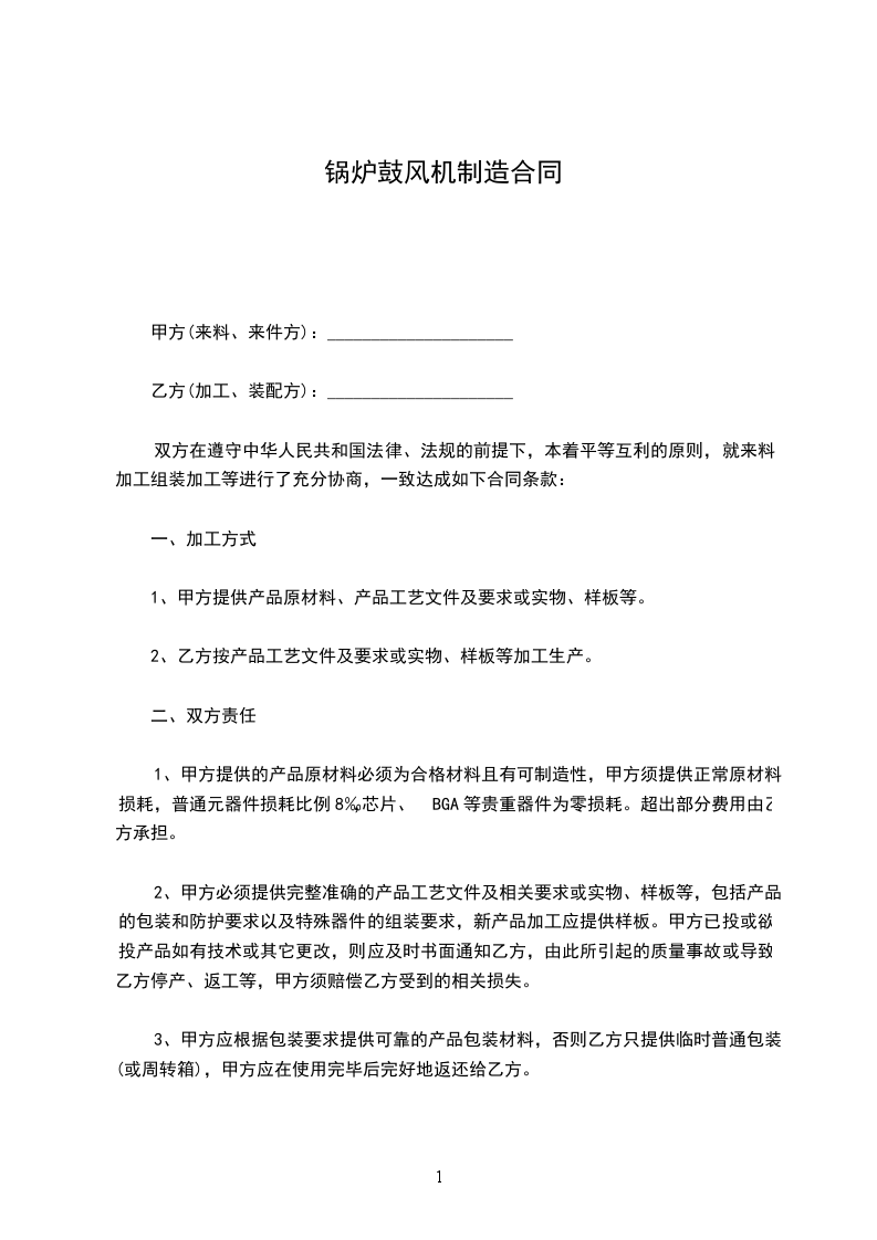 乙方(加工、装配方):_____________________