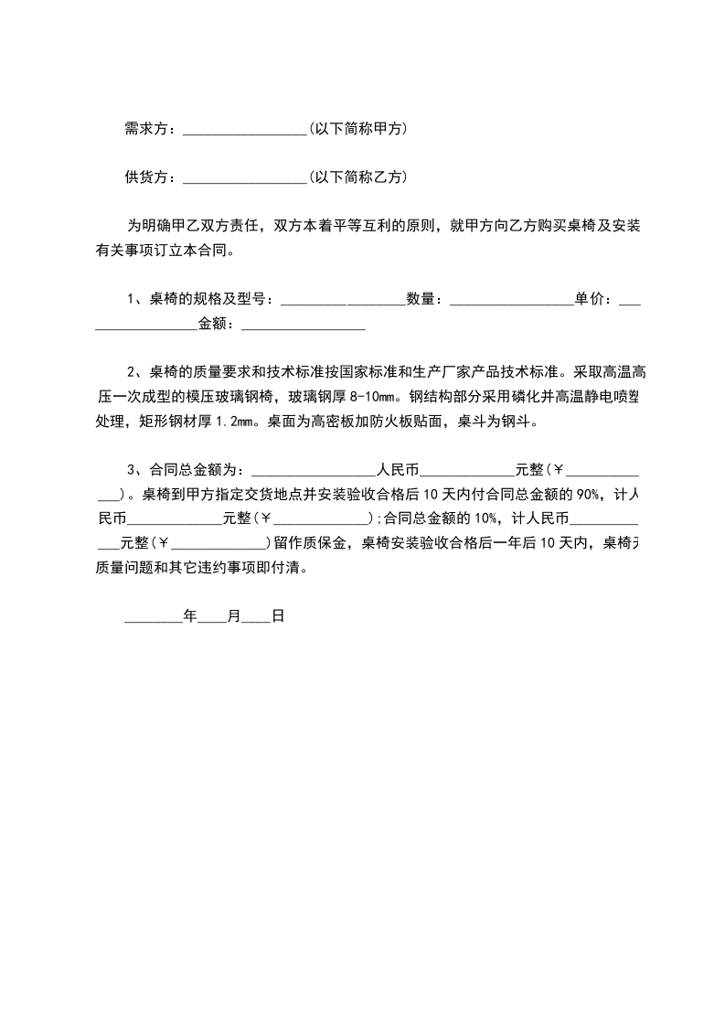 为明确甲乙双方责任,双方本着平等互利的原则,就甲方向乙方购买桌椅及安装有关事项订立本合同。