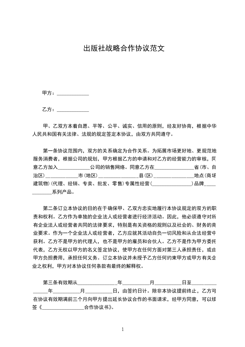第三条有效期从________________年___________月___________日至________________年___________月___________日,由签约日计。除非本协议提前终止,乙方可在协议有效期满前三个月向甲方提出延长协议合作的书面请求,经甲方同意,可以续签《_________________合作协议书》。
