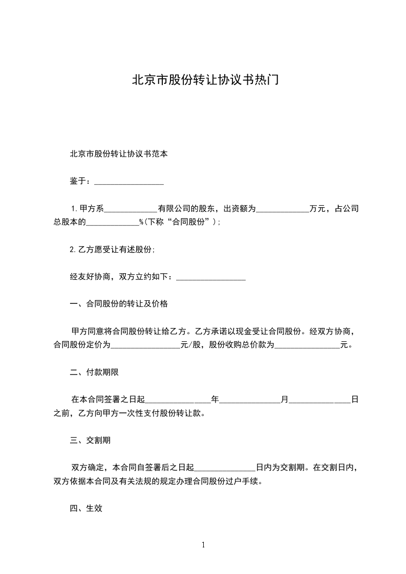 双方确定,本合同自签署后之日起_______________日内为交割期。在交割日内,双方依据本合同及有关法规的规定办理合同股份过户手续。