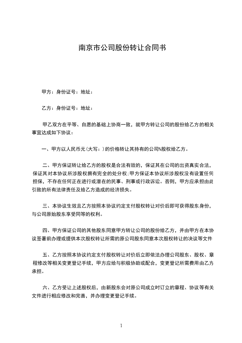 1.甲方系_____________有限公司的股东,出资额为_____________万元,占公司总股本的_____________%(下称“合同股份”);