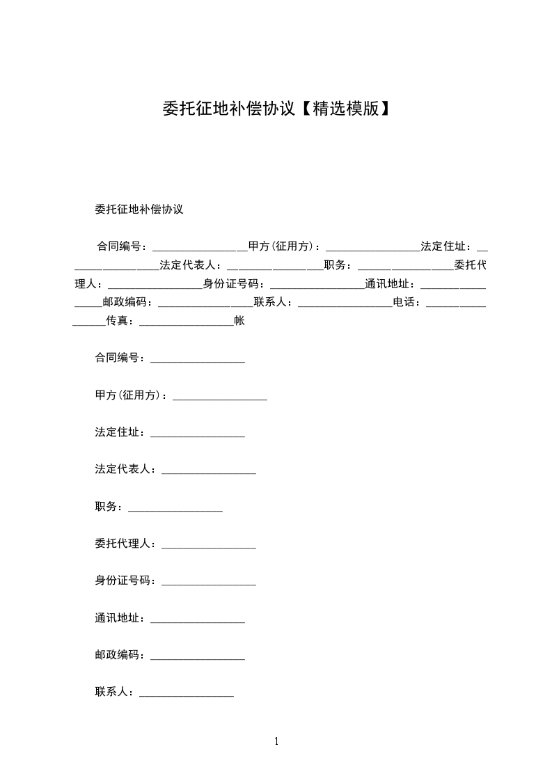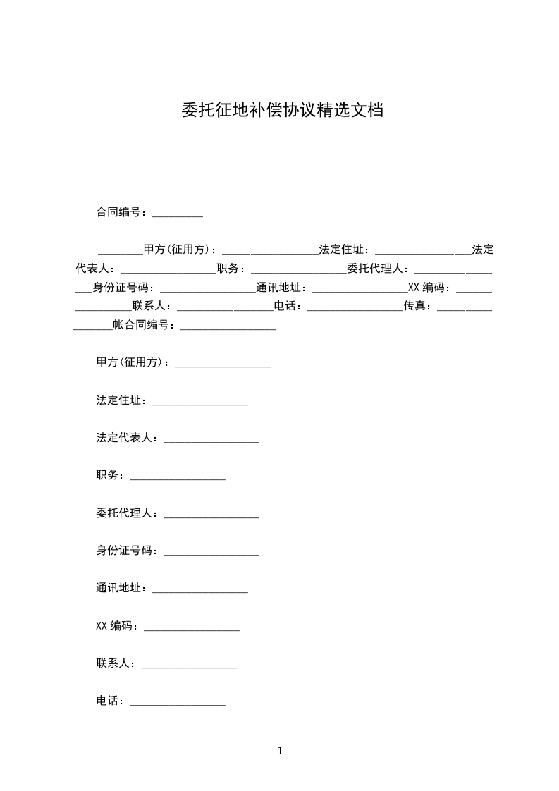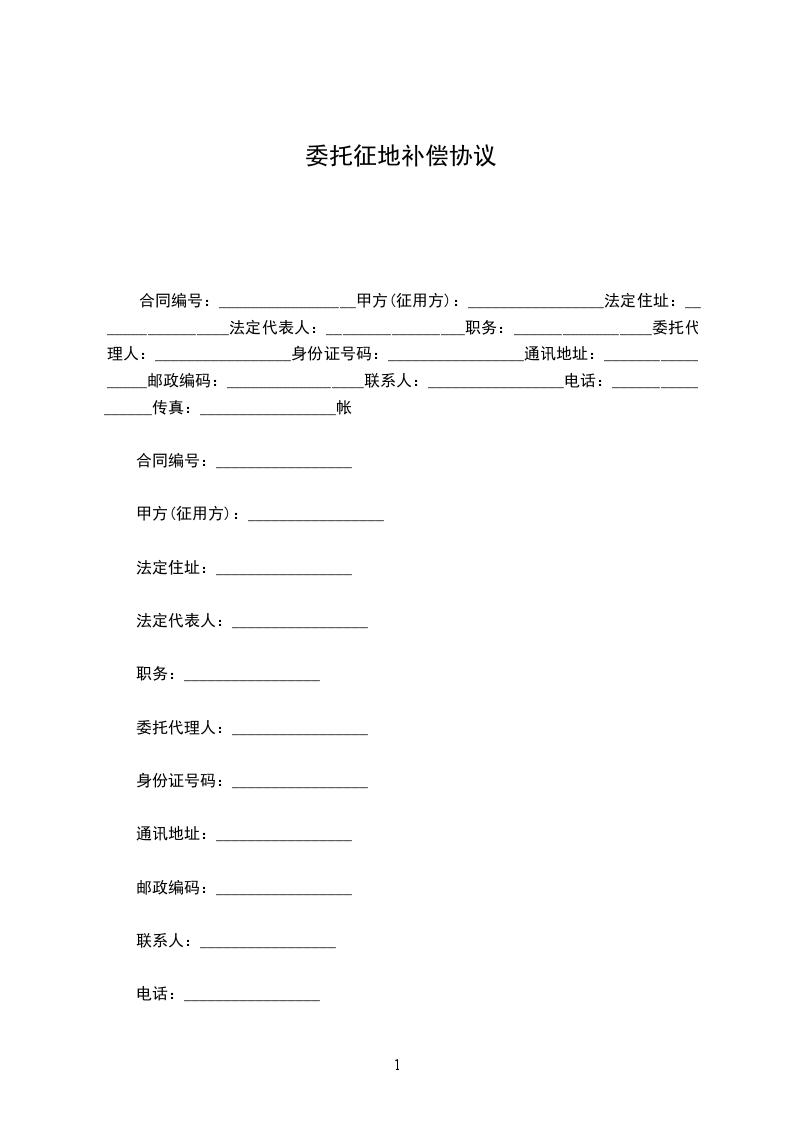 合同编号:_________________甲方(征用方):_________________法定住址:_________________法定代表人:_________________职务:_________________委托代理人:_________________身份证号码:_________________通讯地址:_________________邮政编码:_________________联系人:_________________电话:_________________传真:_________________帐