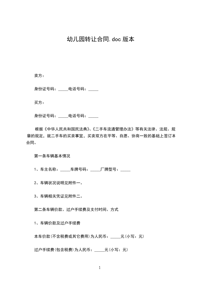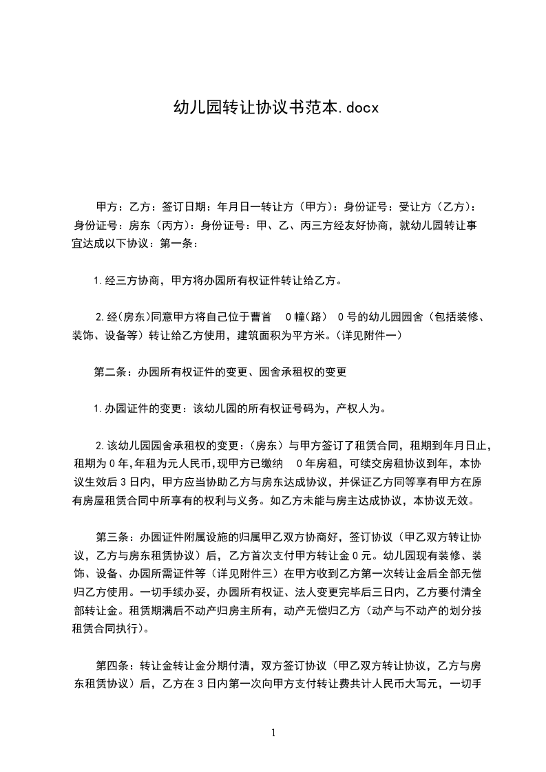 甲、乙双方经友好协商,就幼儿园转让事宜达成以下协议: