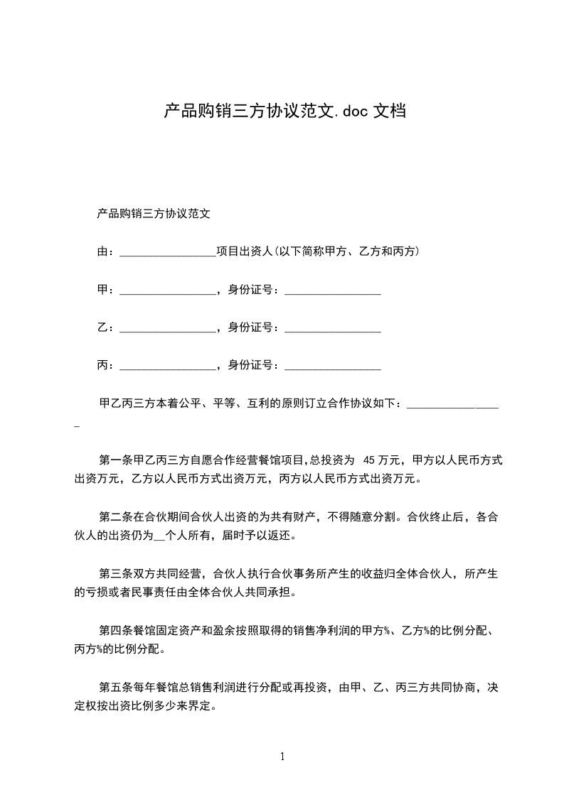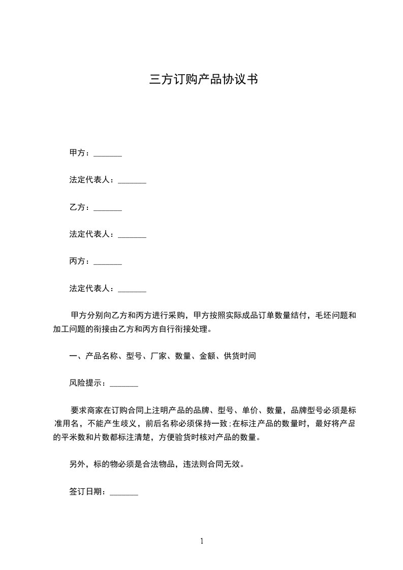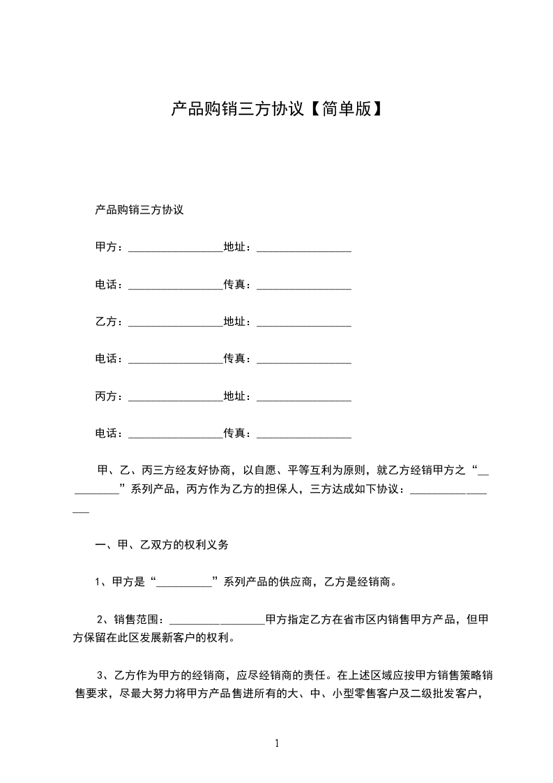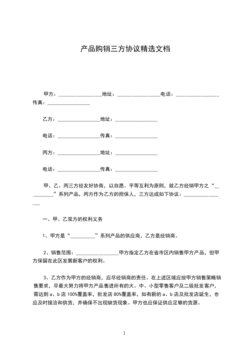 甲、乙、丙三方经友好协商,以自愿、平等互利为原则,就乙方经销甲方之“__________”系列产品,丙方作为乙方的担保人,三方达成如下协议:_________________