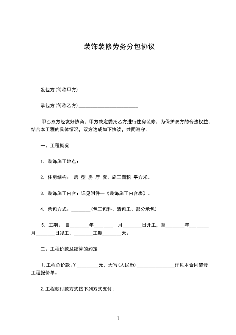 4. 承包方式:________(包工包料、清包工、部分承包)