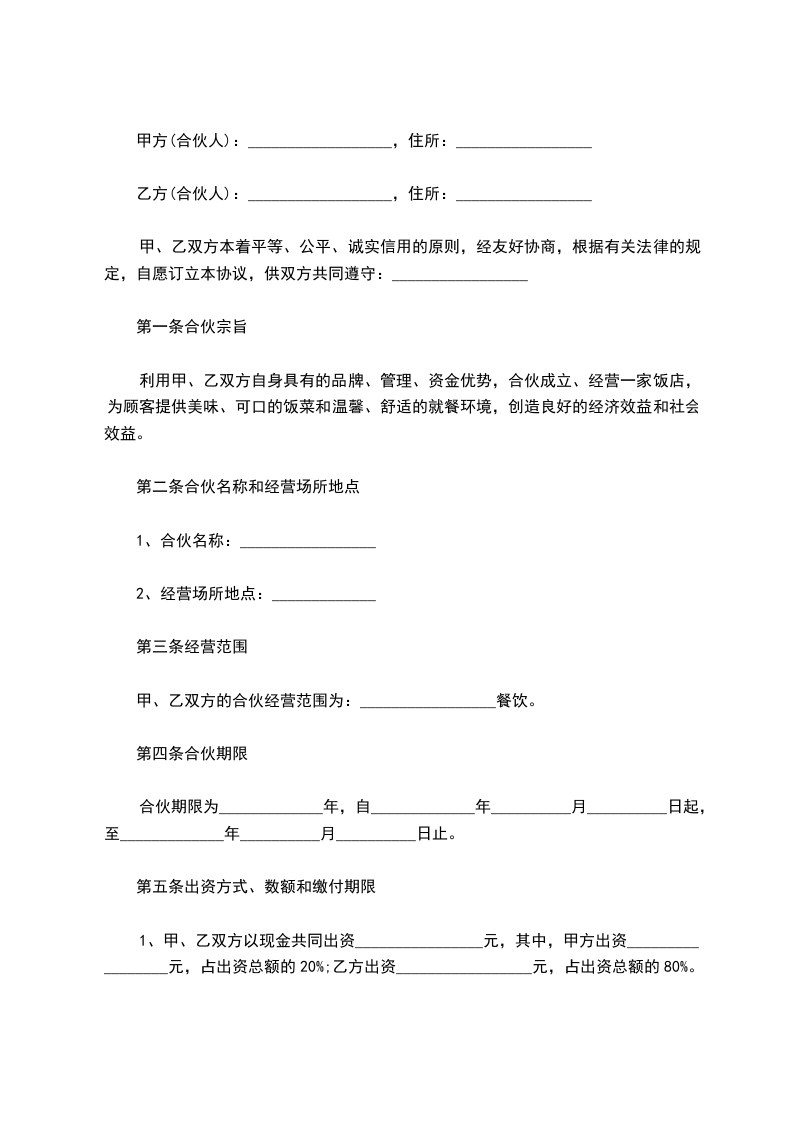 甲、乙双方的合伙经营范围为:_________________餐饮。