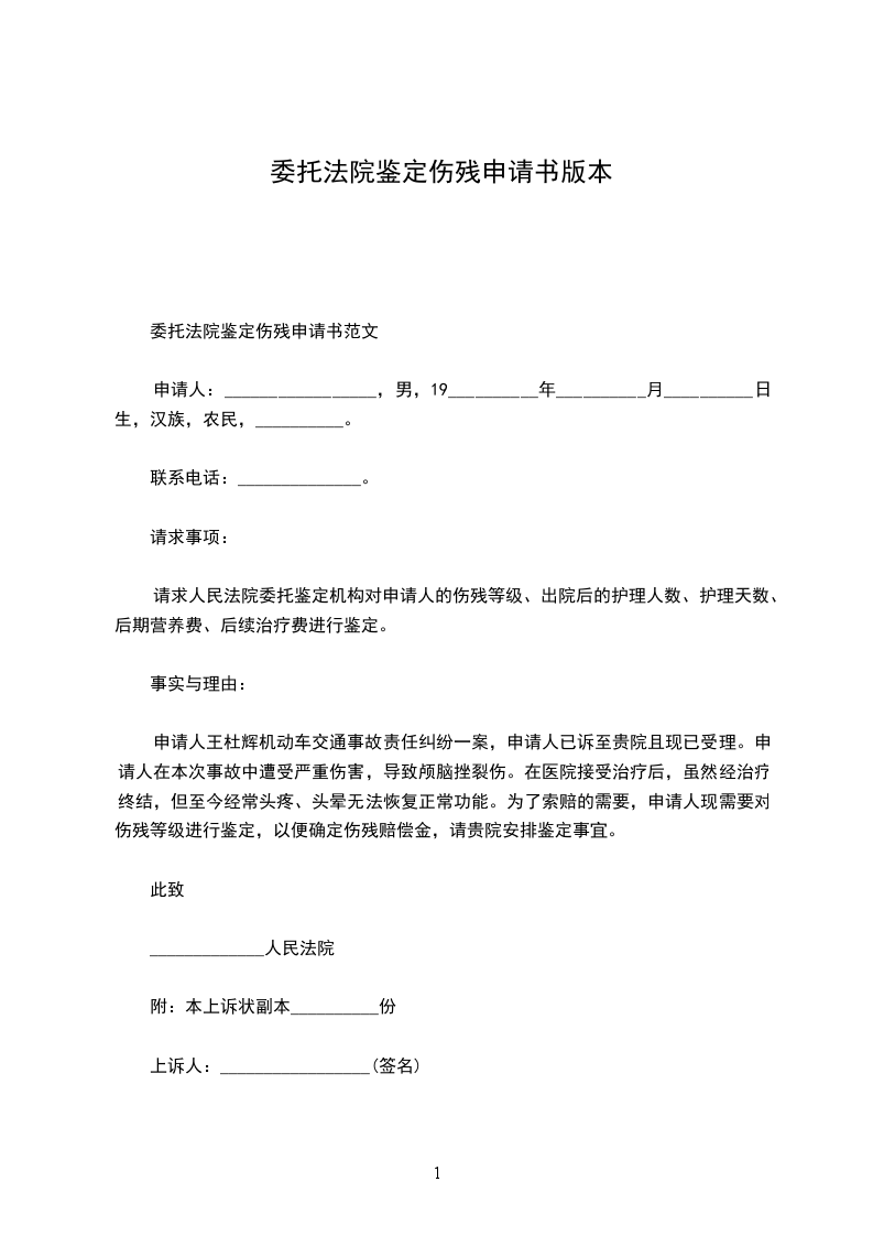 我所接受当事人委托,办理其人身损害赔偿纠纷一案的诉讼代理业务。现为了查明案情,维护当事人的合法权益,必须对当事人的伤残等级作出司法鉴定,以便于法庭审理时计算当事人的残疾赔偿金、后续治疗费和生活护理费等赔偿费用。为此,特向遵义市第一人民医院法医司法鉴定所提出司法鉴定申请,敬请作出鉴定为谢!