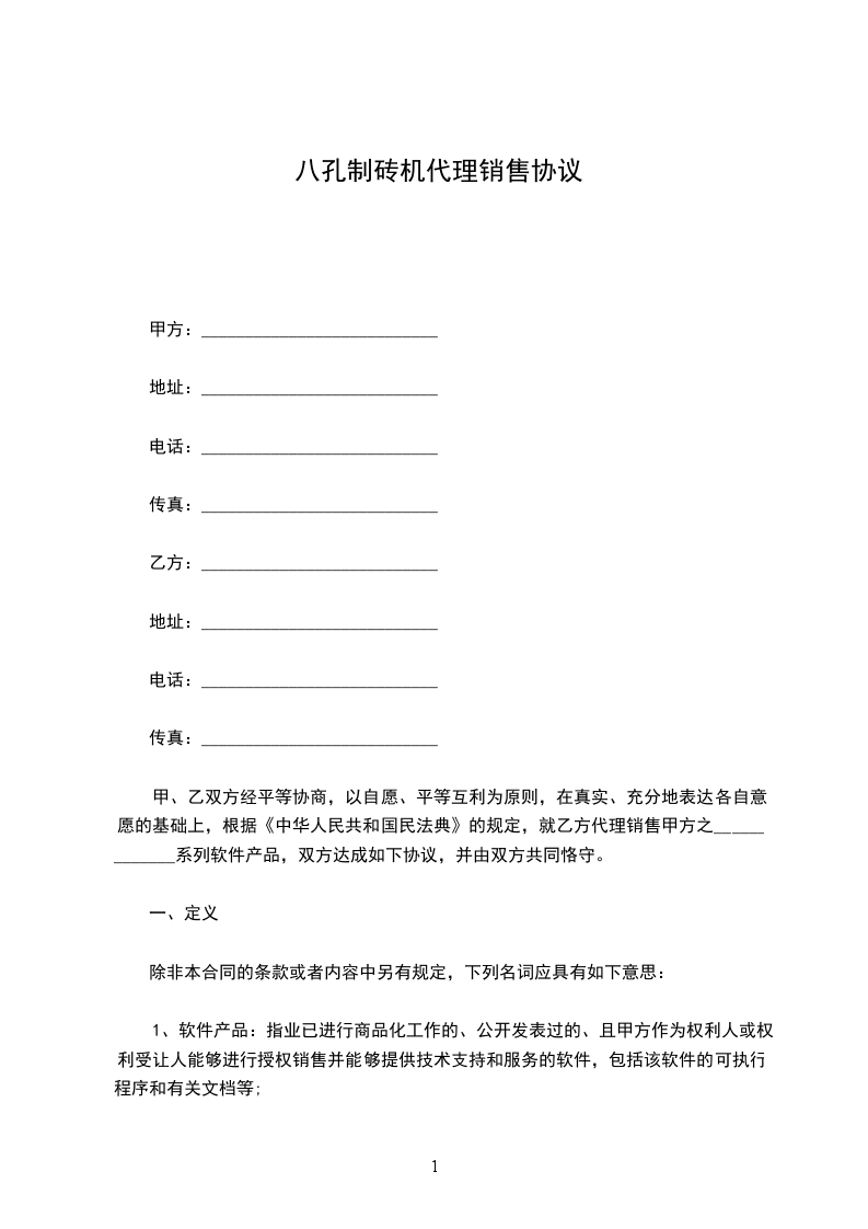 八孔制砖机出租合同