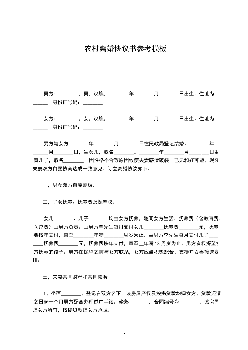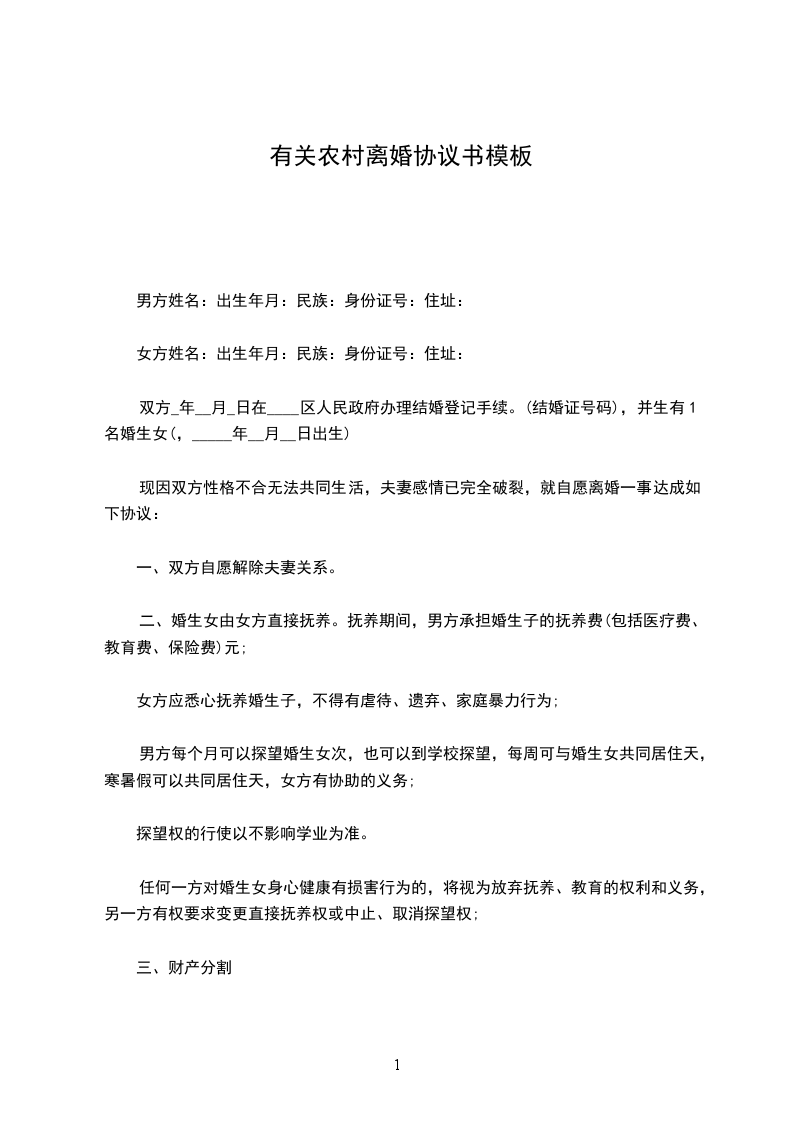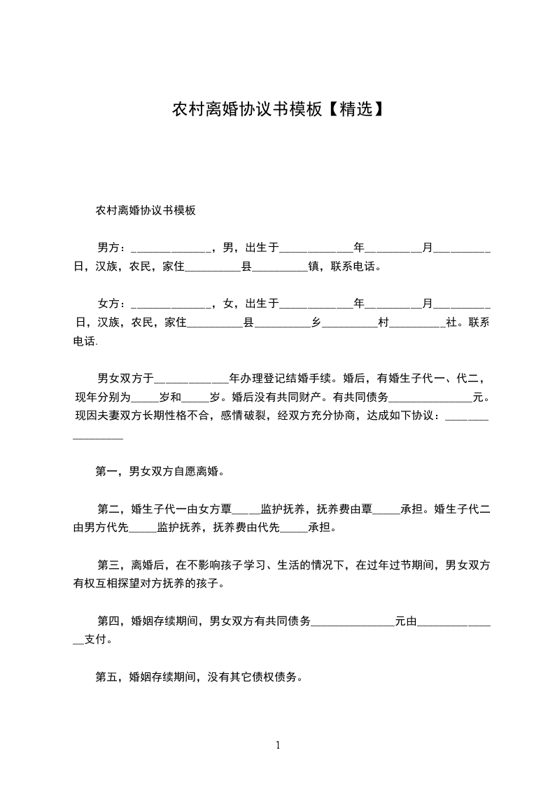 女方:______________,女,出生于_____________年__________月__________日,汉族,农民,家住__________县__________乡__________村__________社。联系电话.